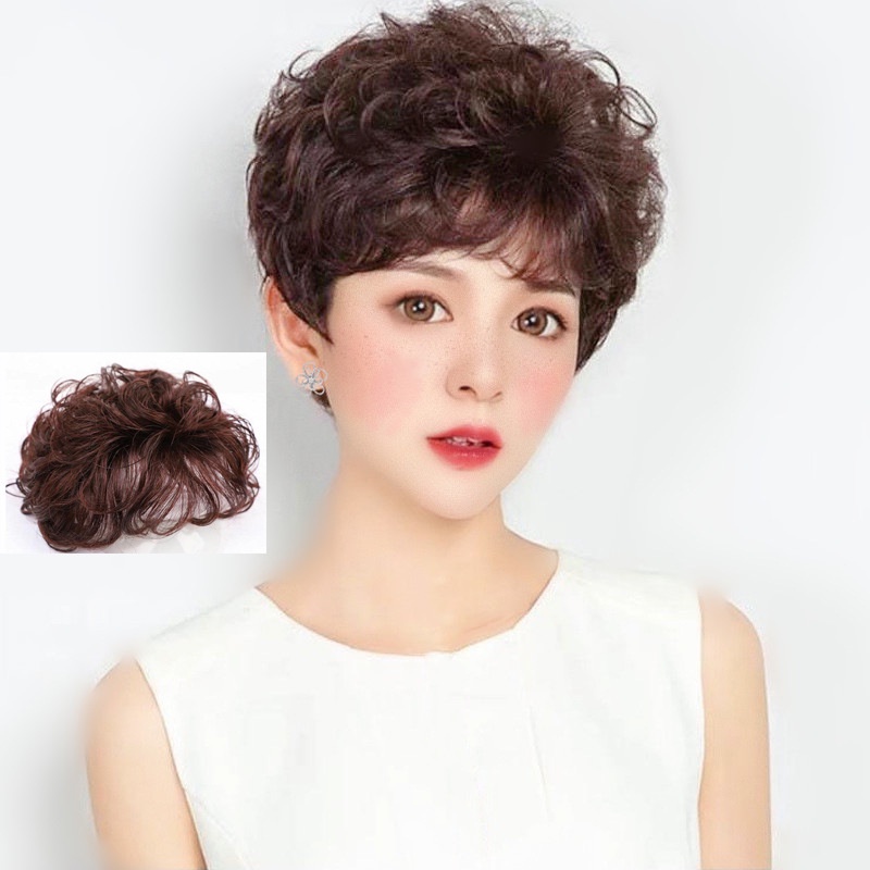 Women's head top hair replacement block, new middle-aged and elderly mother's white short curly hair block, artificial human hair piece