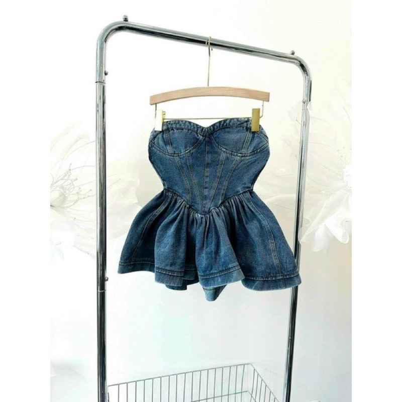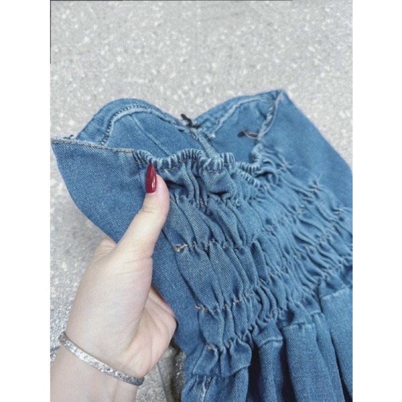 Women's jean crop top, women's jean tube top with chic waistband