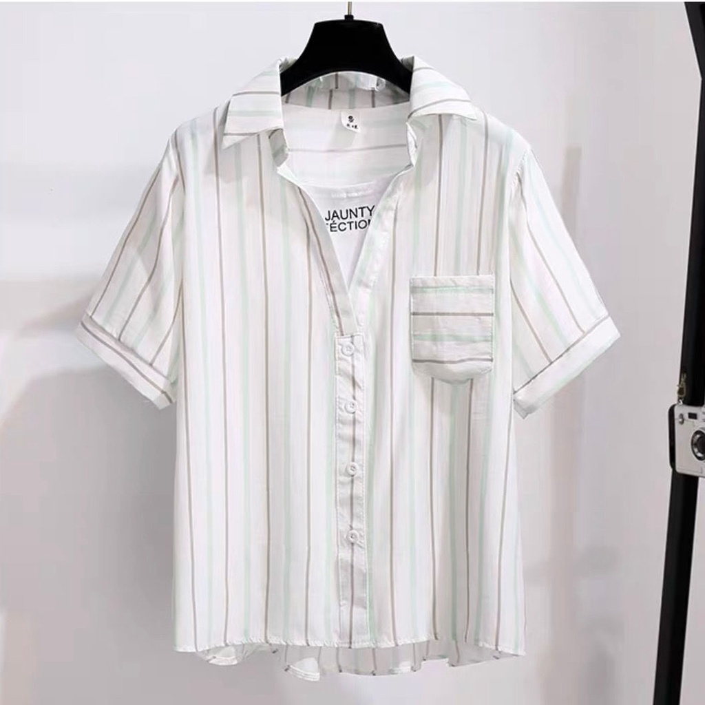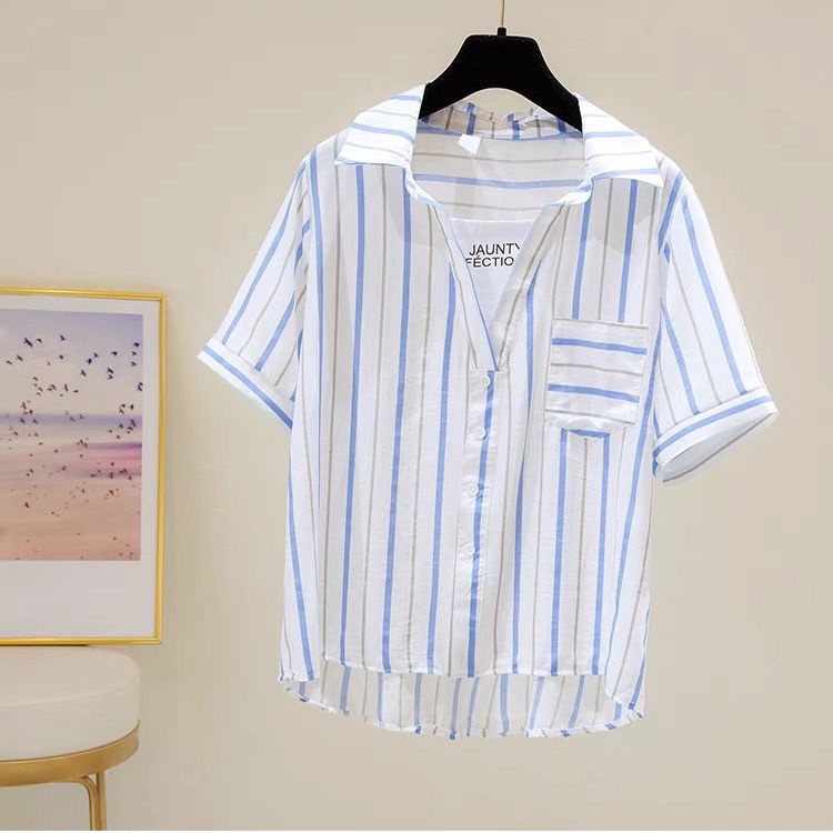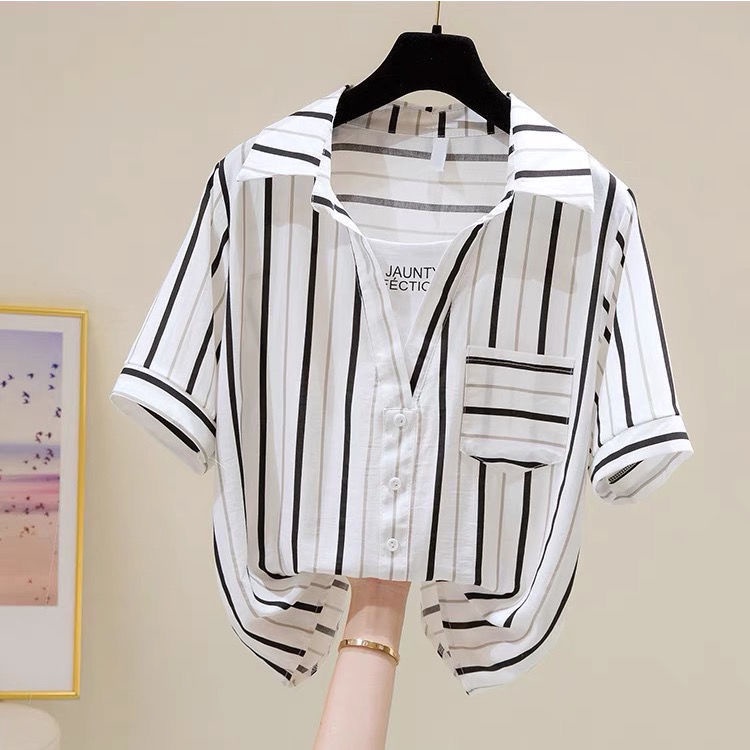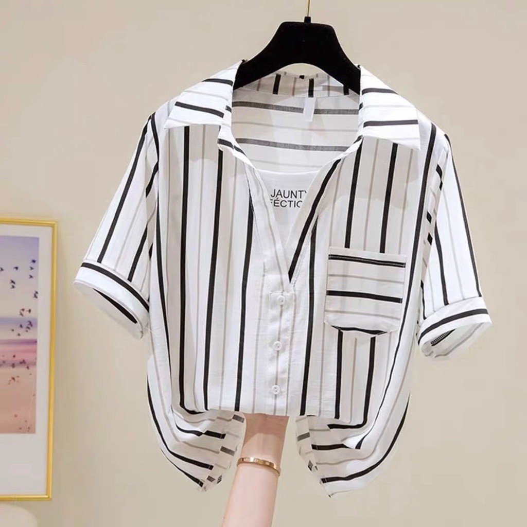 Women's new Style blouse Fashion Black and White Vertical Striped Shirt