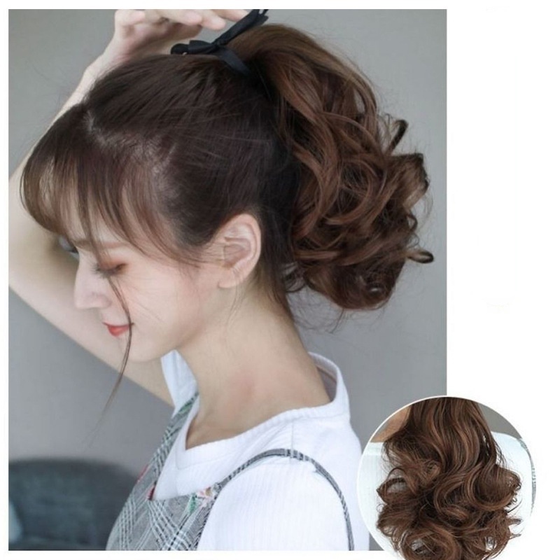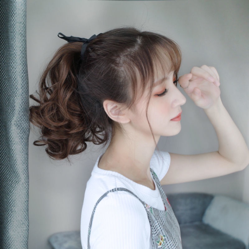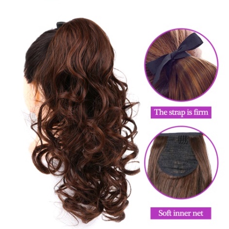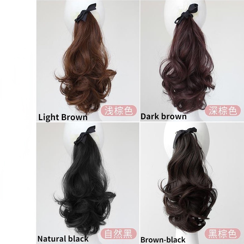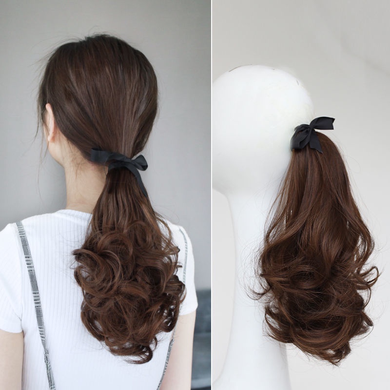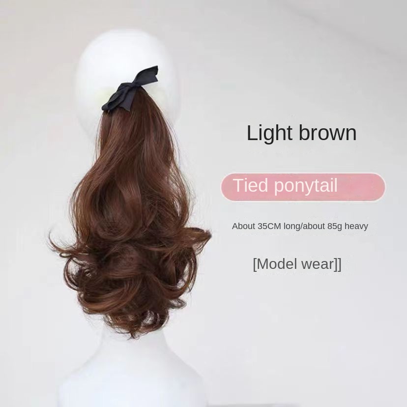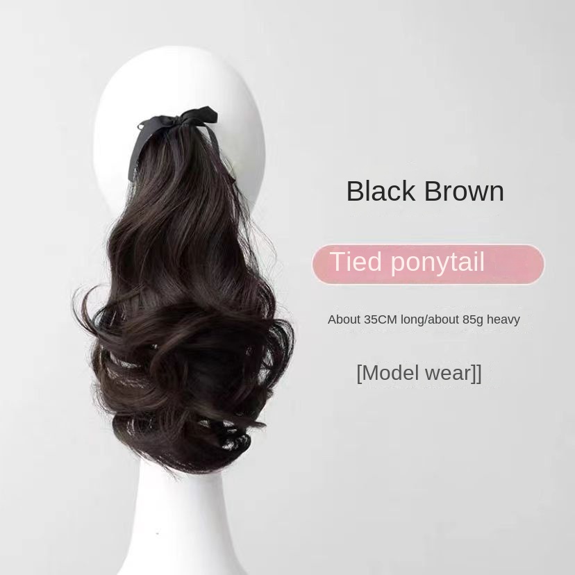 Women's ponytail wig long curly hair strap-type pear flower fake ponytail big wave realistic medium-length wig