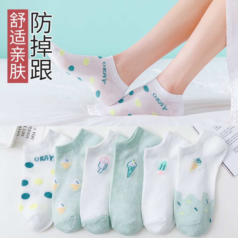 Women's short-neck socks - women's low-neck cotton socks in plain color with thin and airy lace