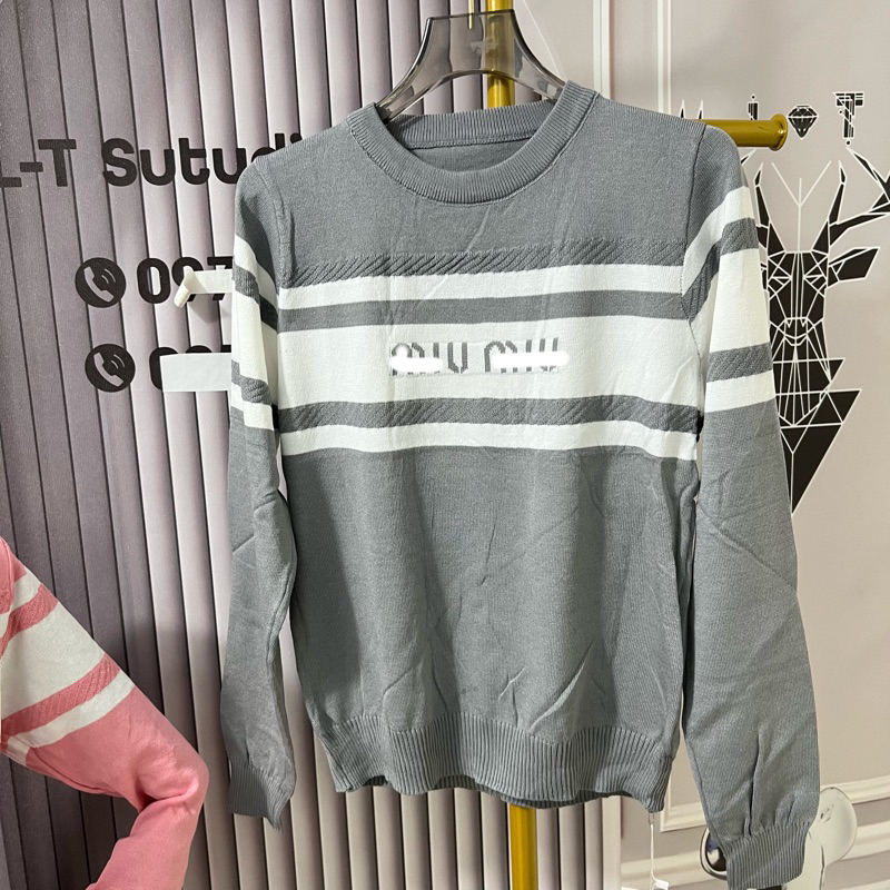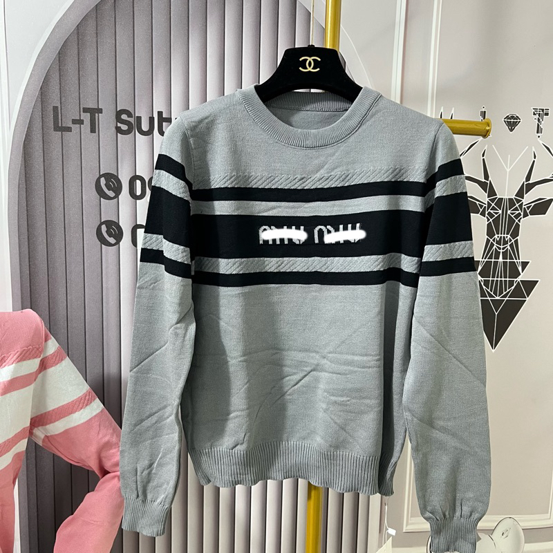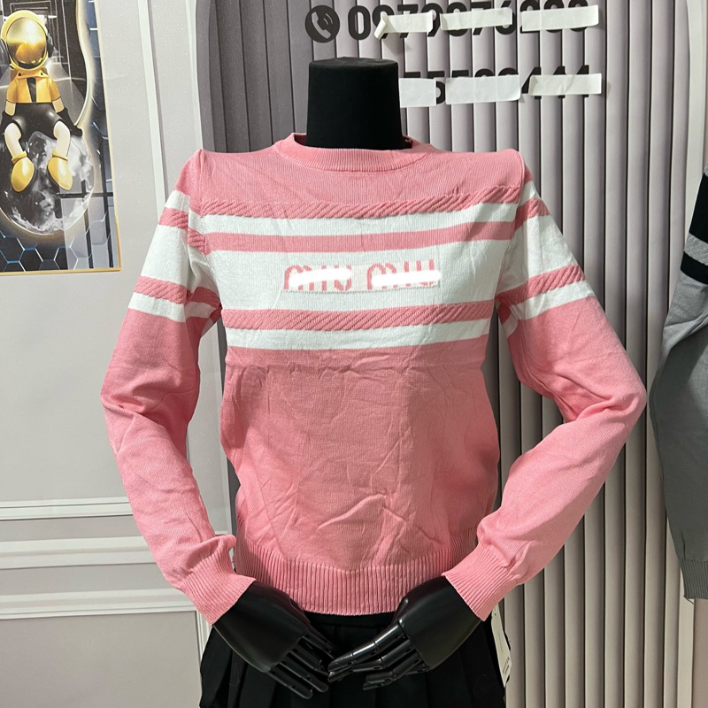 Women's sweater mongtoghi woolshort sleeve mixed with super hot colors with letter m pattern across the chest 788