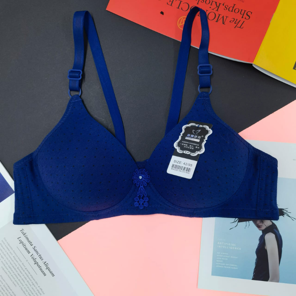 Women Bra Wireless Bra 34-42B Polka Dot Cotton Bra Baju Dalam Wanita Tanpa Dawai Coli Wanita
