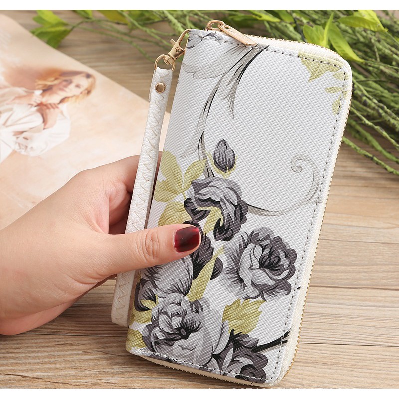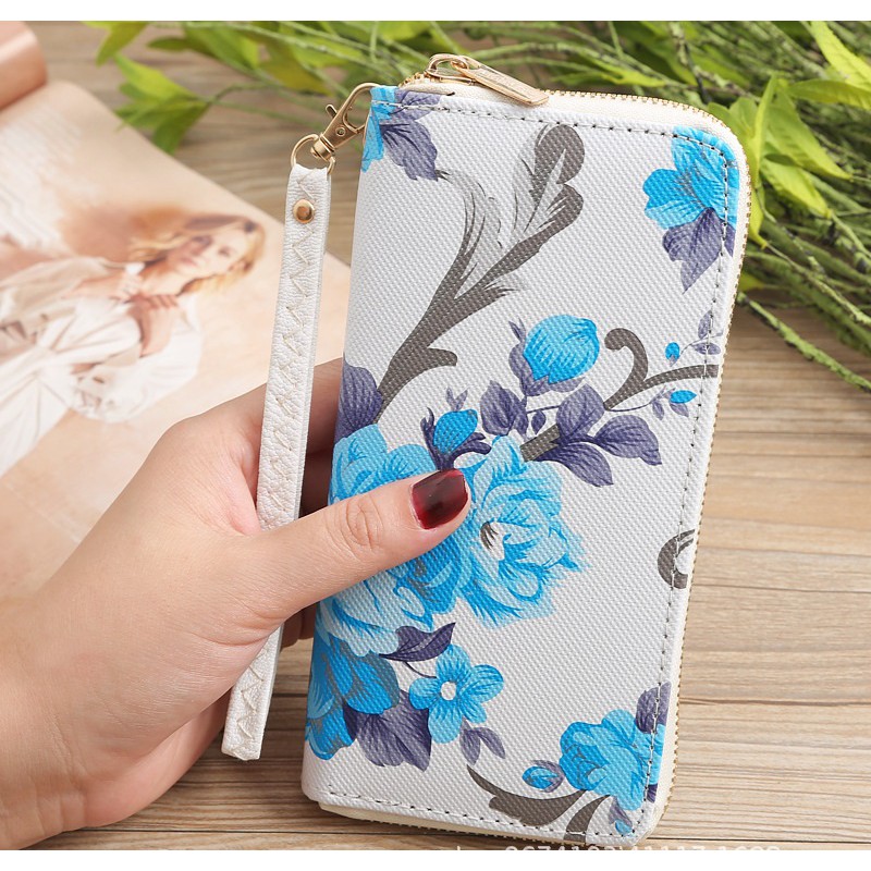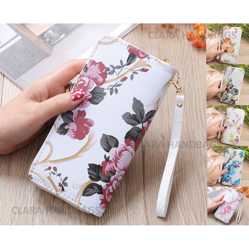 Women Girl Flower Rose Floral Long Zip Wallet Bag Dompet Beg Tangan Wanita Perempuan Bunga Murah Pouch Lady Purse Purple