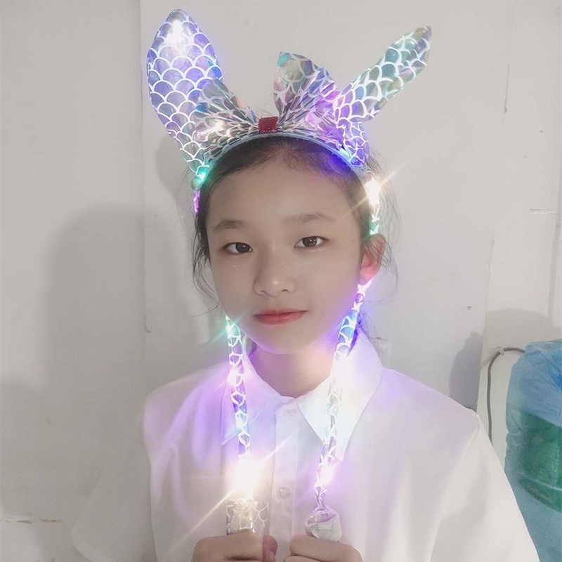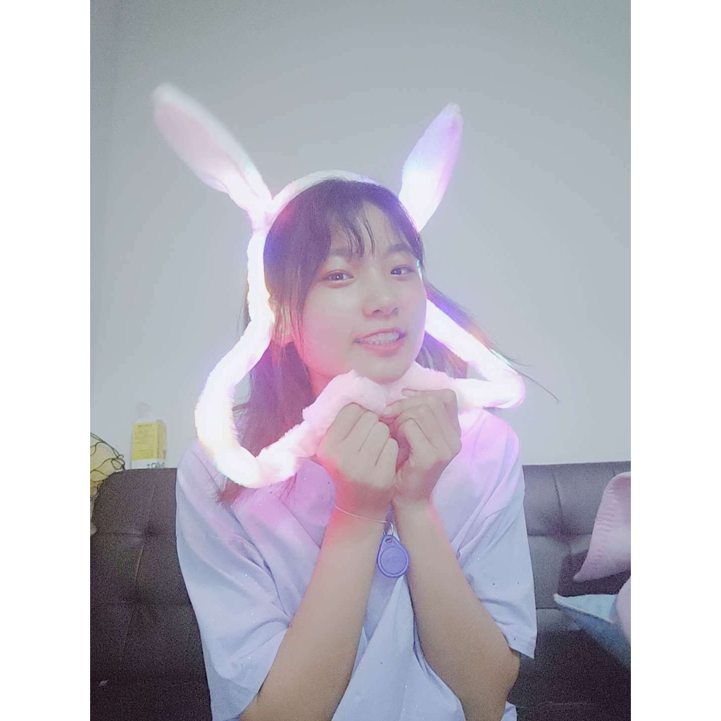 Women Girls Cute LED Light Up Rabbit Headband with Airbag Moving Ears Children Bunny Long Plush Toy Hair Hoop Party Photo Props