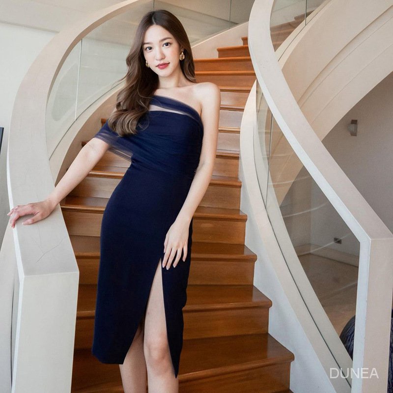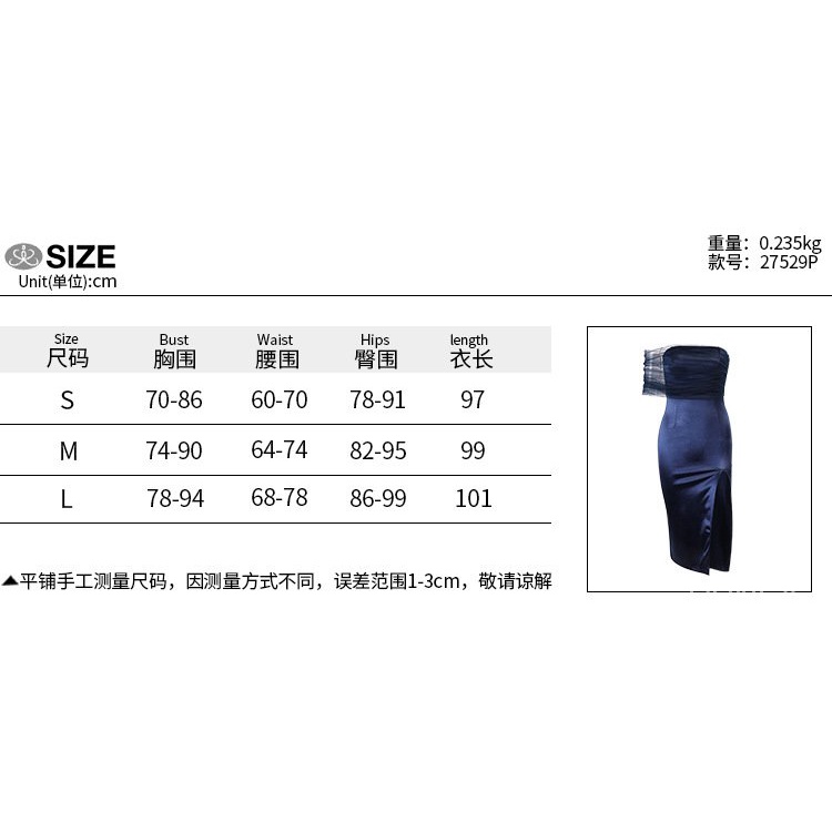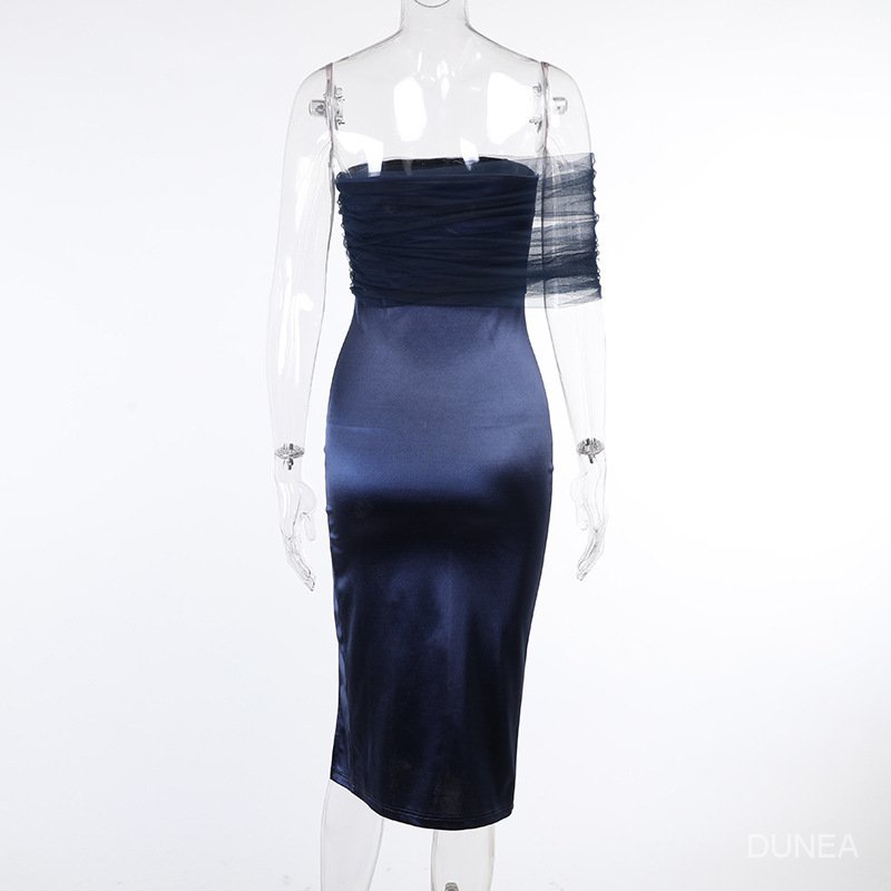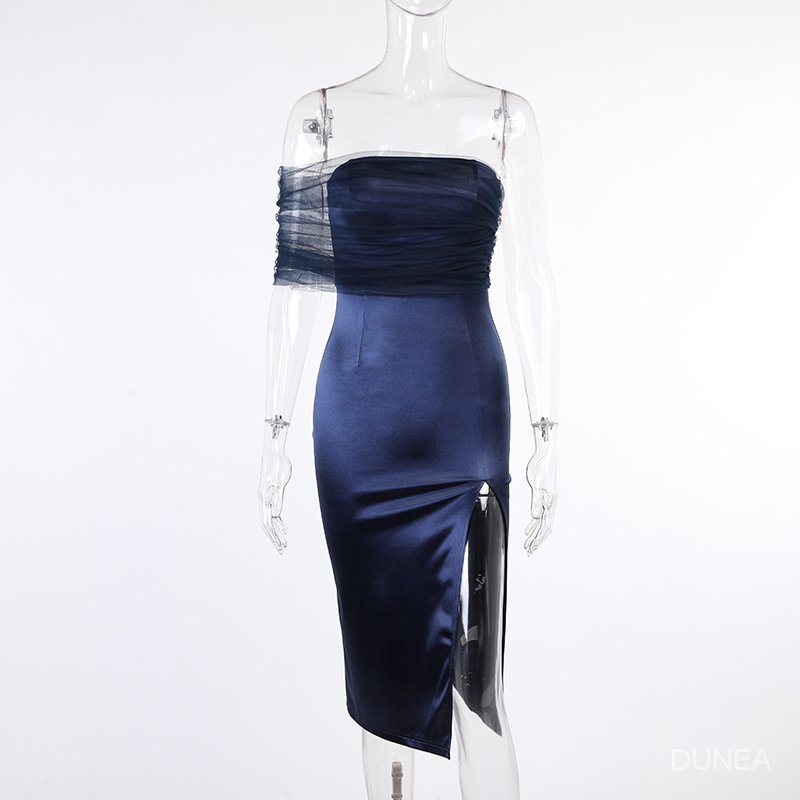 Women Sexy Strapless Mesh Split Satin Party Dress c2sw