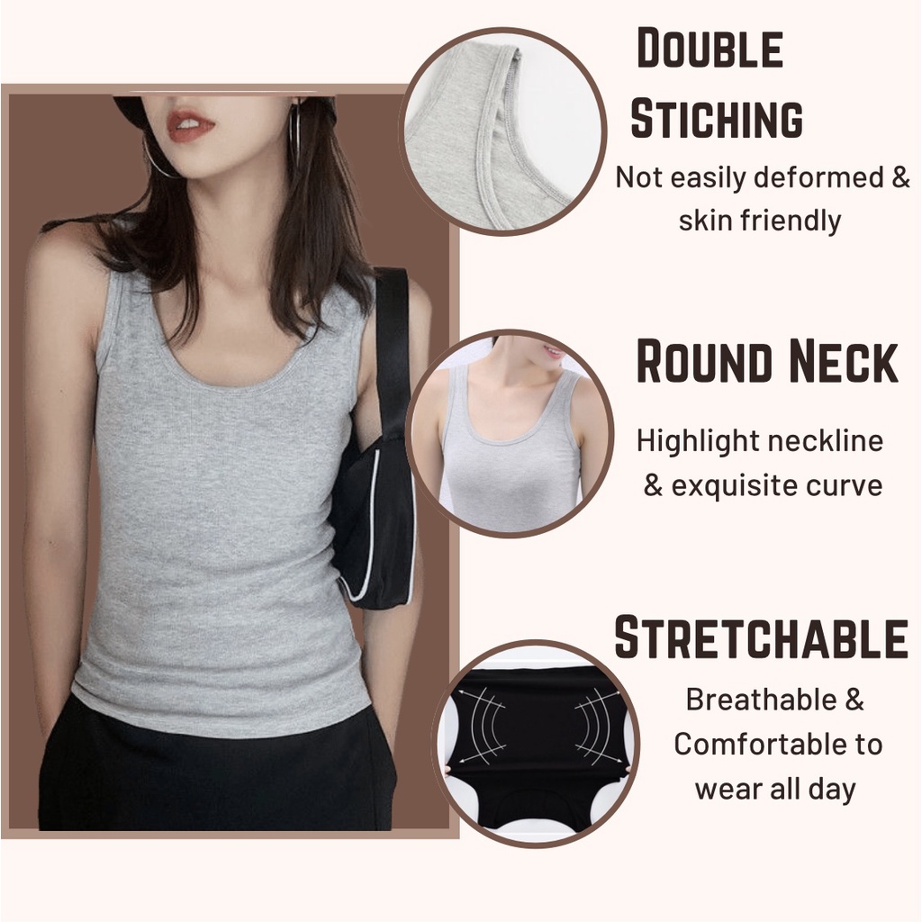 Women Singlet Plain Singlet Multi Color Camisole Inner Tank Top Sleeveless Shirt Plus Size Undershirt Baju Perempuan