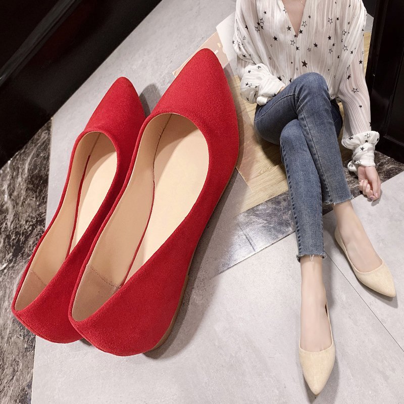 Women Suede Leather Flat Shoes Comfortable Pointed Toes for Daily Wear Shoes