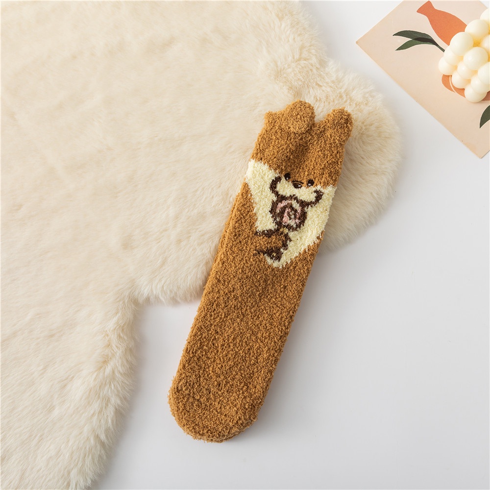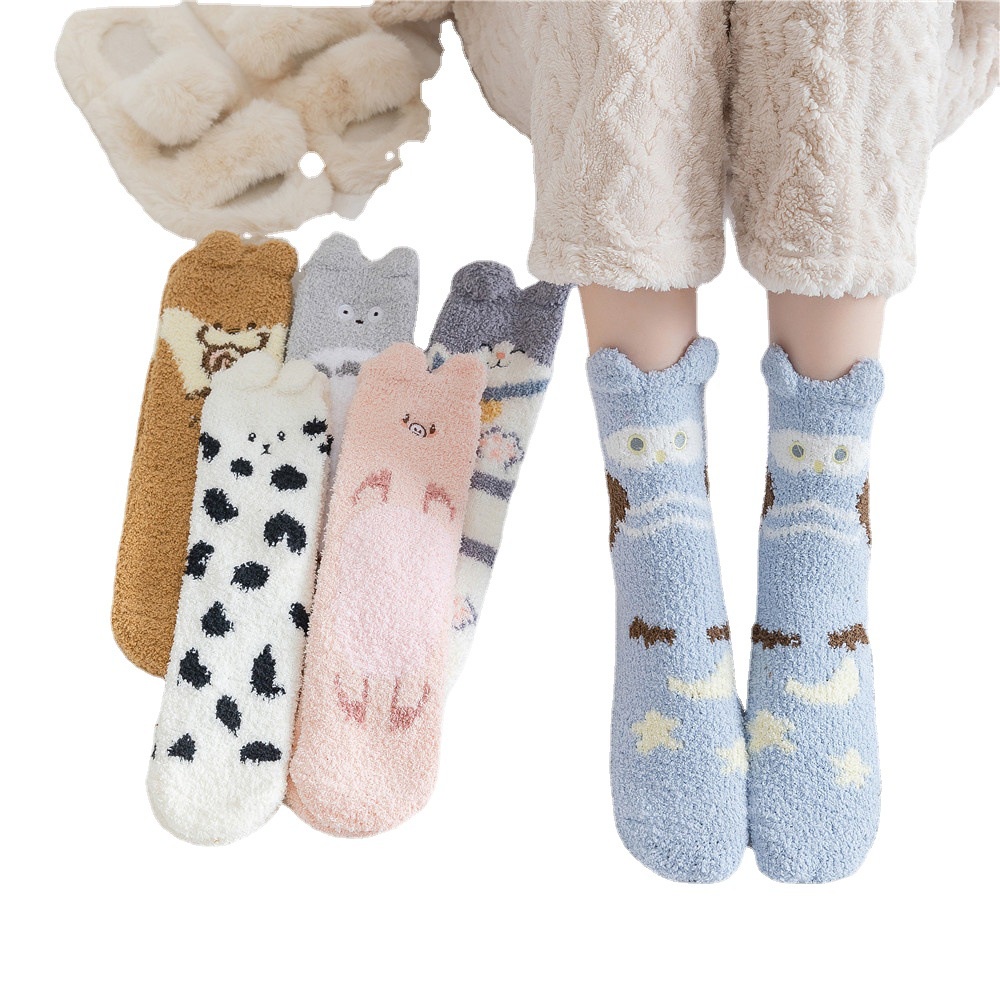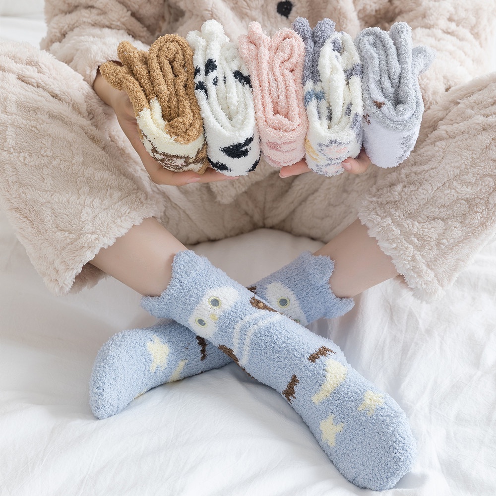Women Winter Plush Cozy Slipper Socks Warm Fuzzy Soft Fluffy Sleep Sock Cute Cartoon Funny Animal Designe Indoor Mid Calf Crew Socks