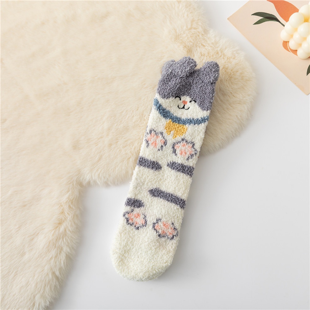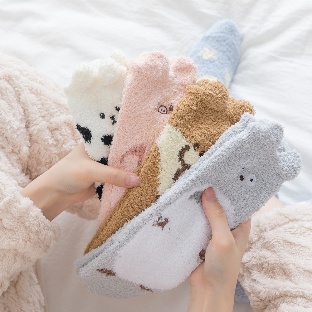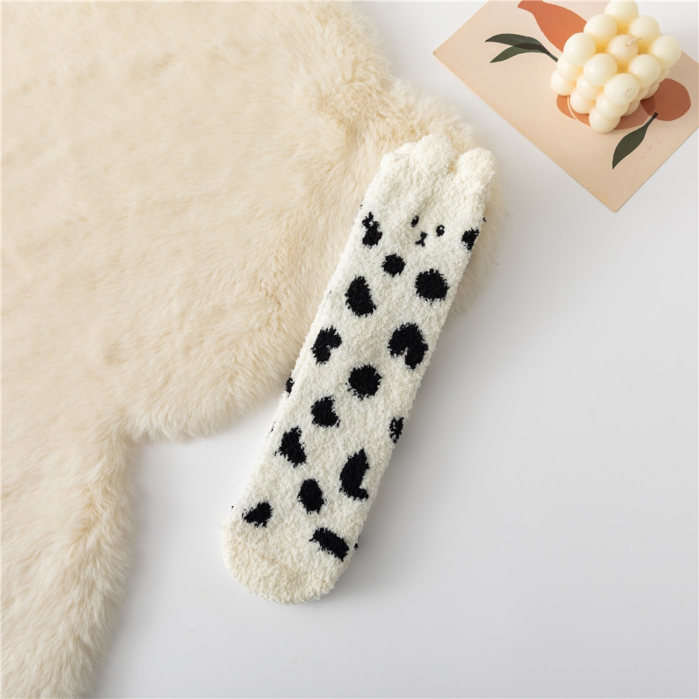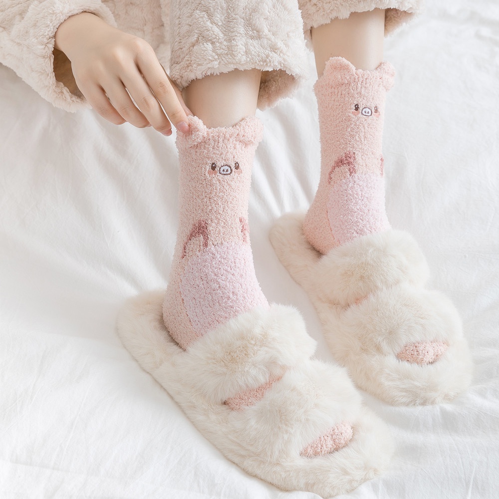 Women Winter Plush Cozy Slipper Socks Warm Fuzzy Soft Fluffy Sleep Sock Cute Cartoon Funny Animal Designe Indoor Mid Calf Crew Socks