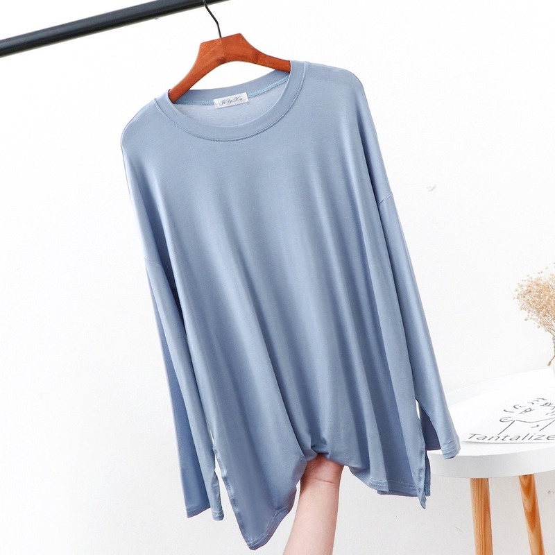 Women modal tshirts loose large size long sleeve plain casual tops round neck tshirt casual clothes 9 colors 45-100kg