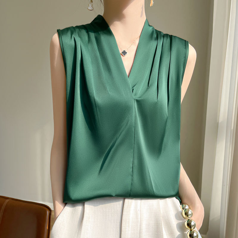 Womens Casual Elegant Halter Sleeveless Top Summer Comfort Soft V Neck Solid Color Silk Satin Office Work Tank Top