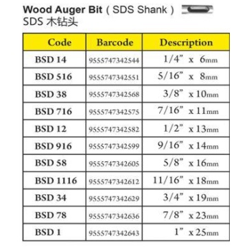 Wood Auger Bit (SDS Shank)