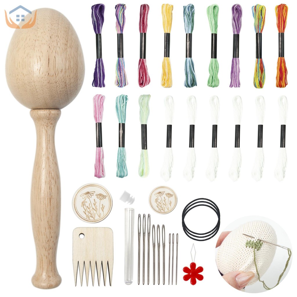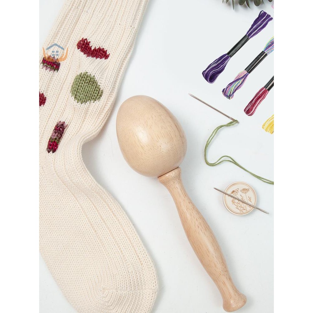 Wood Darning Egg Complete Darning Egg Weaving Tool Set with 13 Color Thread 9Pcs Needle Small Egg-Shaped Patch Weaving Tool for Hat SHOPSKC6579