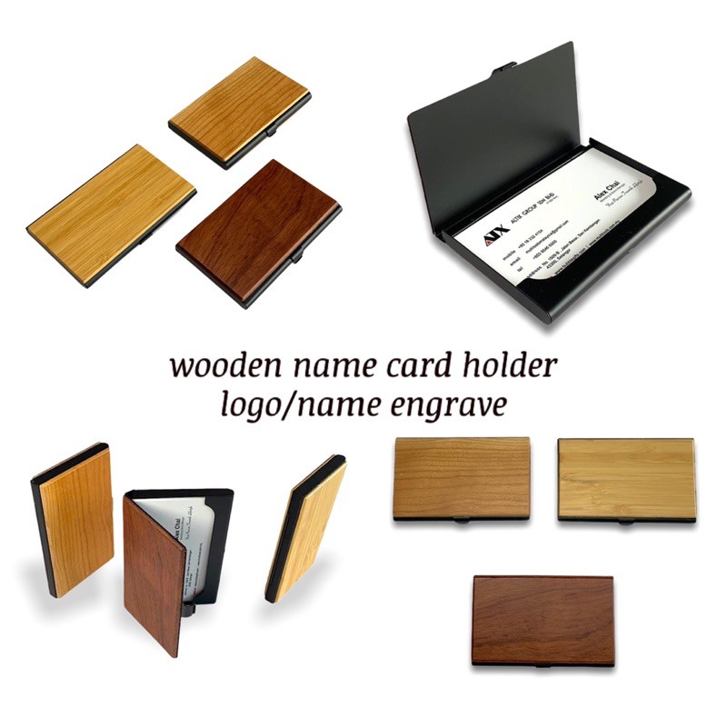Wood Name Card Case With Custom Name With Namecard Holder