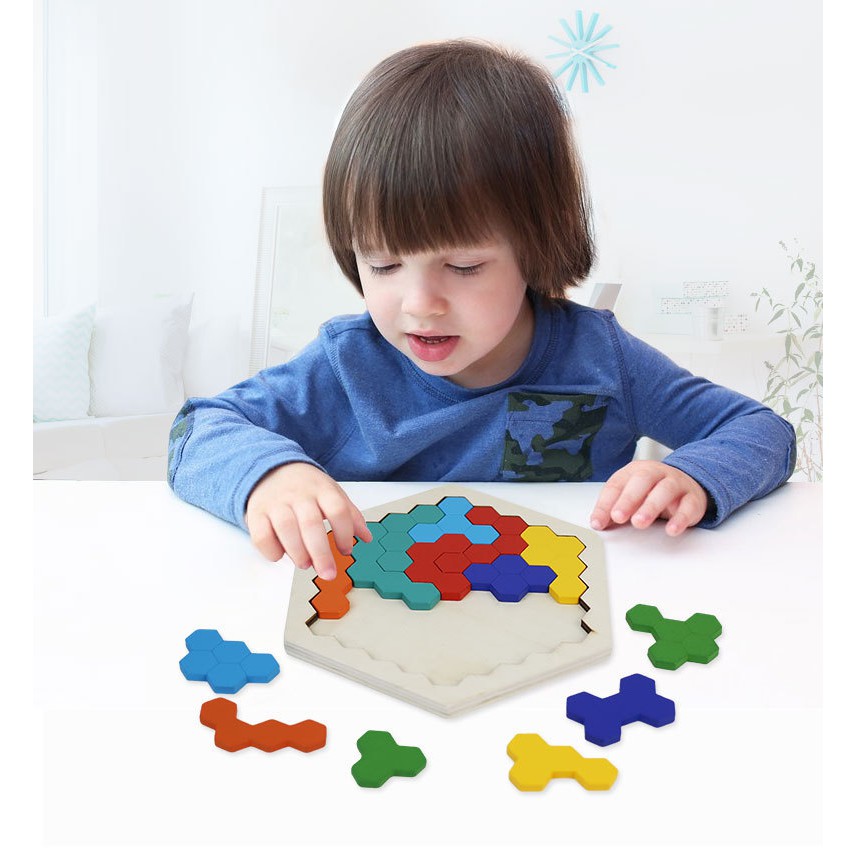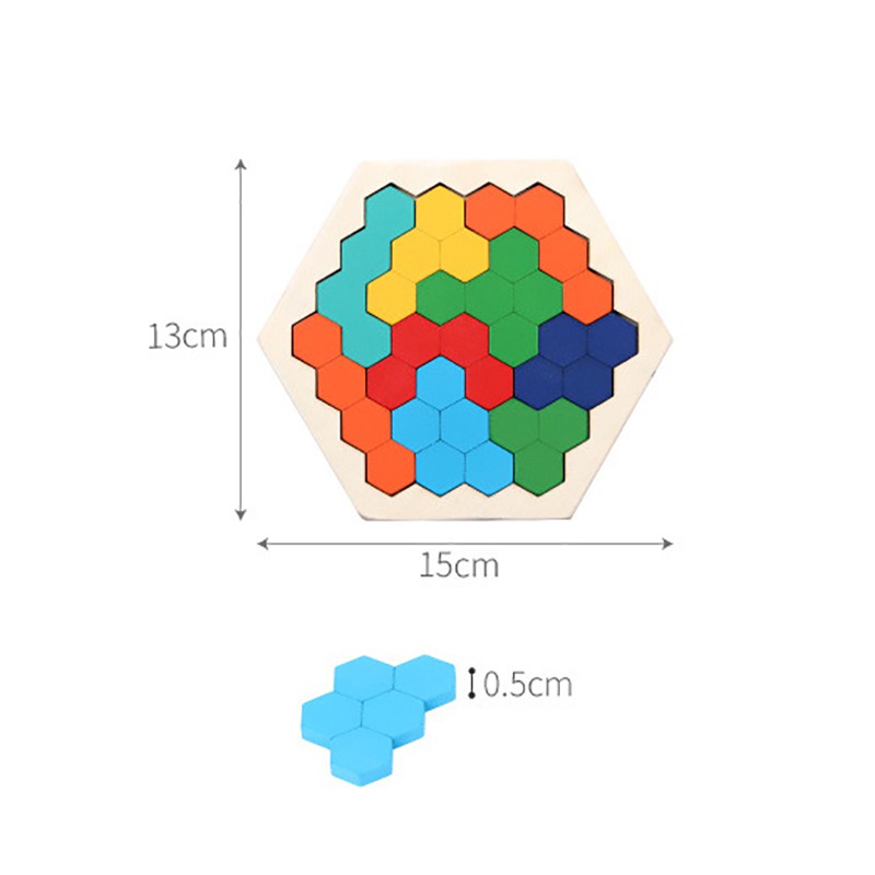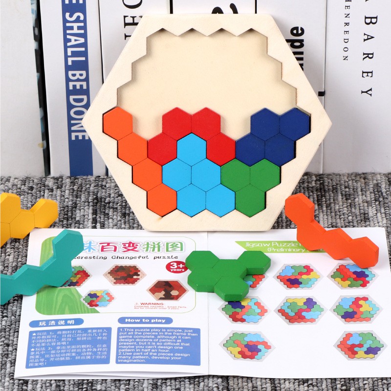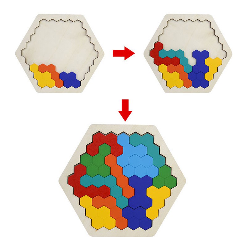 Wood Puzzles IQ Hexagon Puzzle Honeycomb Shape Tangram Board Toy Interesting Changeful Puzzle Toys for Children Adults Education