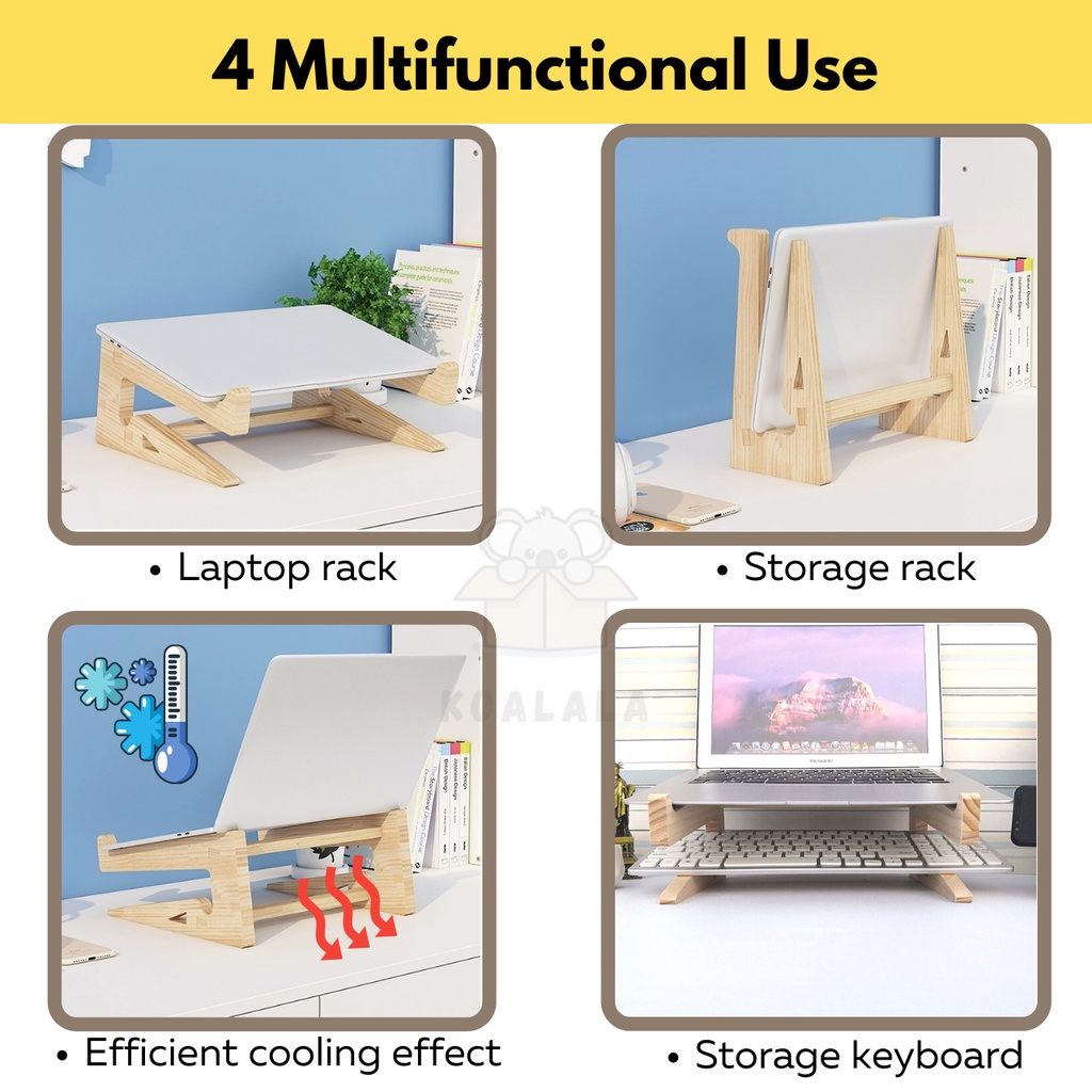Wood Stand Laptop Support Monitor Support Foldable Wooden Rack Monitor Computer Cooling Stand Alas Rak Kayu Laptop