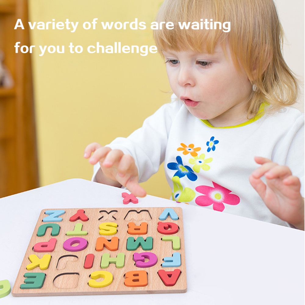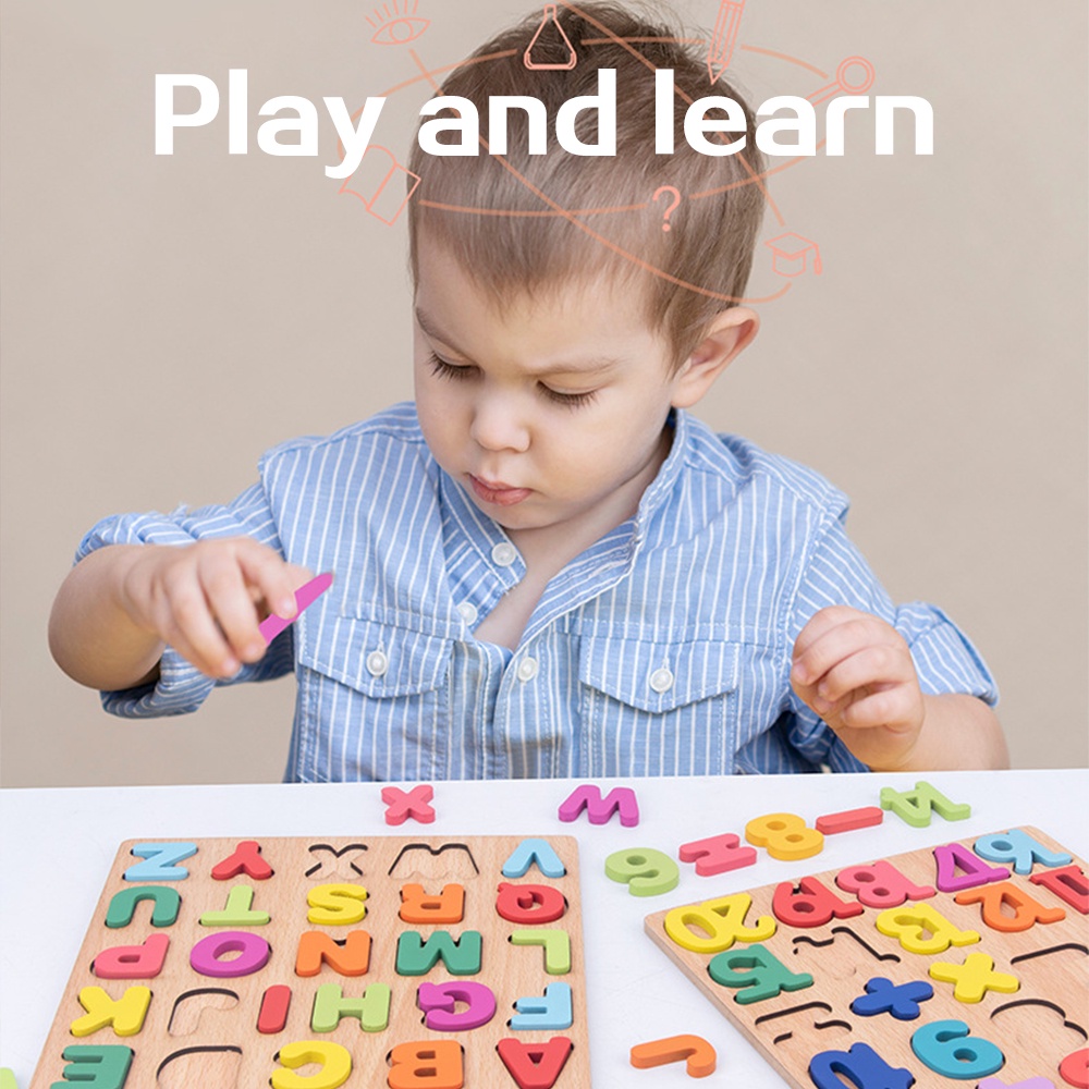 Wooden ABC Puzzle Kids Early Learning Montessori Toy Wooden Match Board Alphabet 123 Number Shape Pairing Mainan ABC