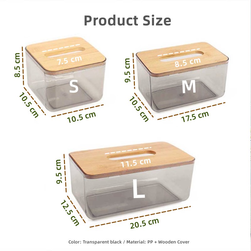 Wooden Bamboo Tissue Box Storage Napkin Tissue Paper Holder Living Room Dresser Study Desk Tisu Box Transparent