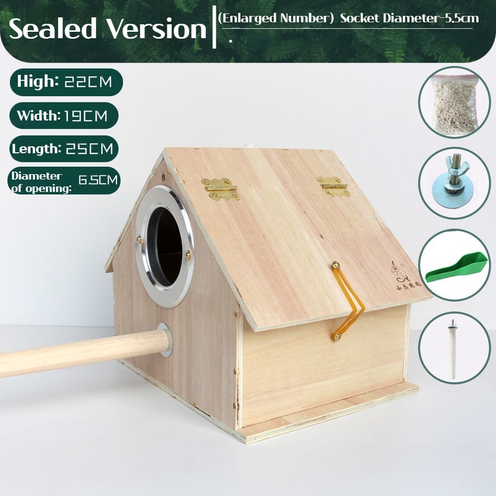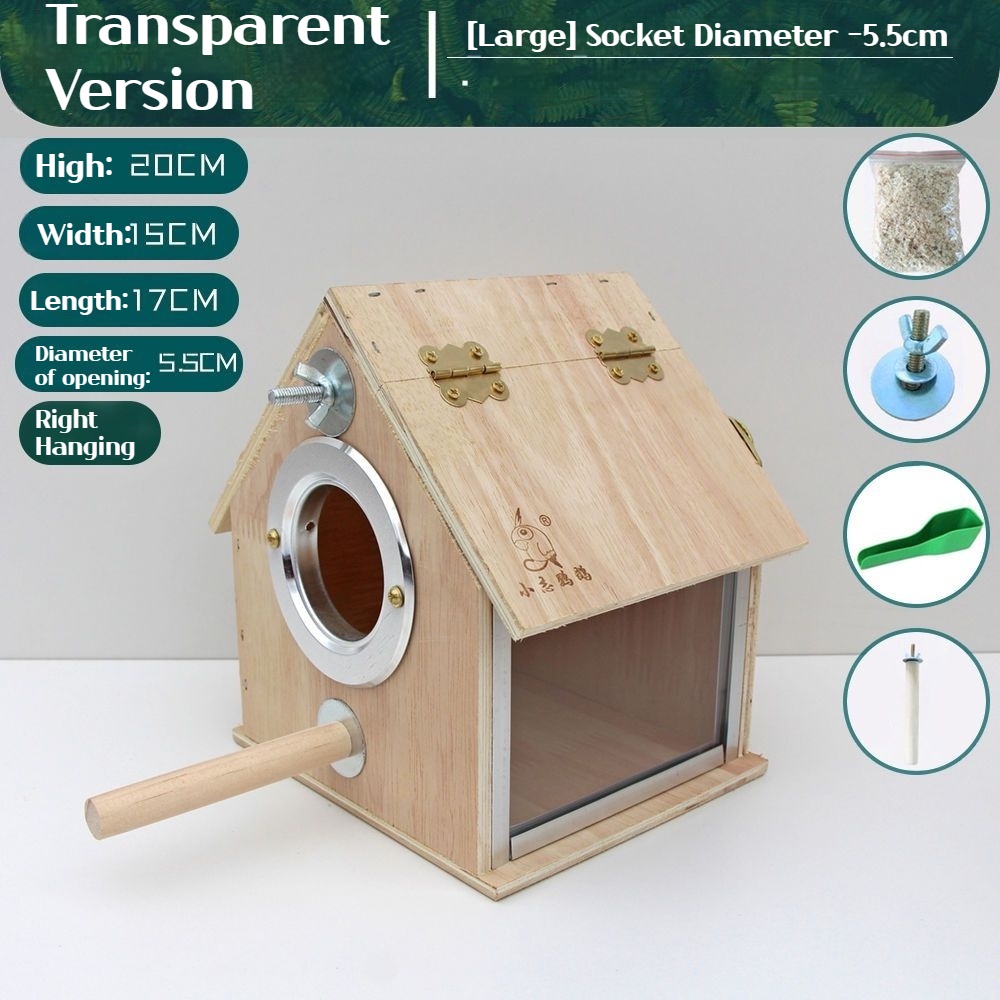 Wooden Bird Nest Box Transparent Bird Breeding Box Parrot Budgie Cockatiel House Bird Nest Bird Cage Accessories