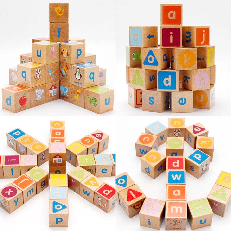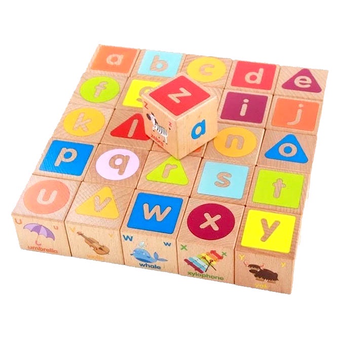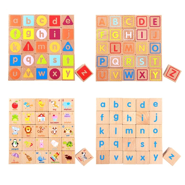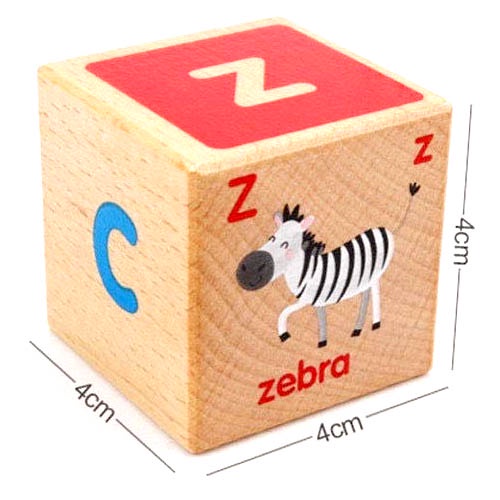 Wooden Blocks Dice Shape 4x4 cm. ABC Print Big Small With And Vocabulary (Quality Work)