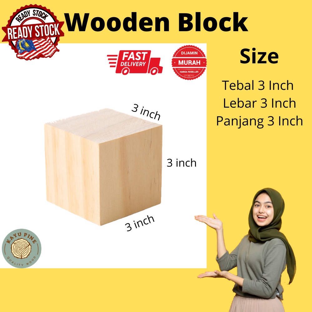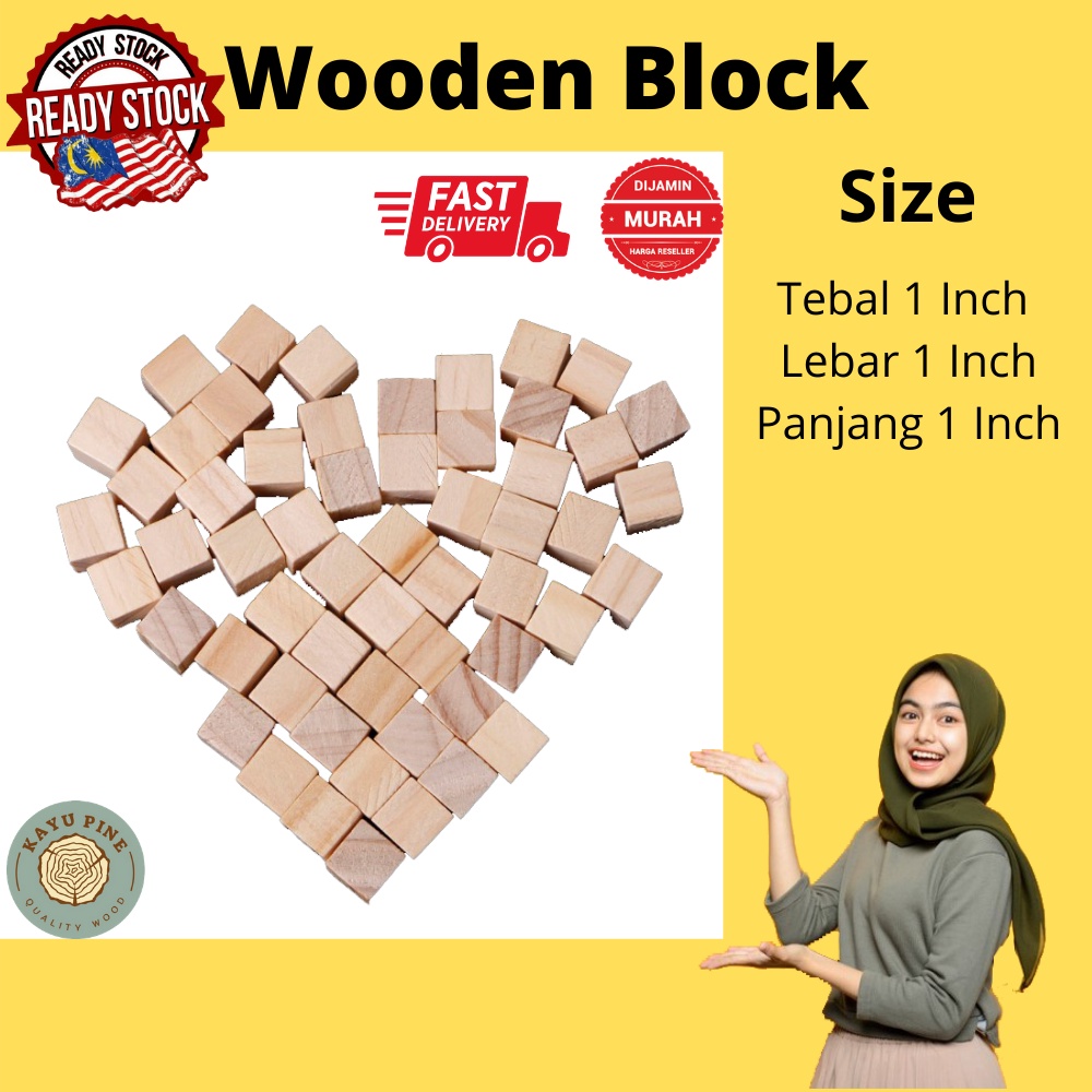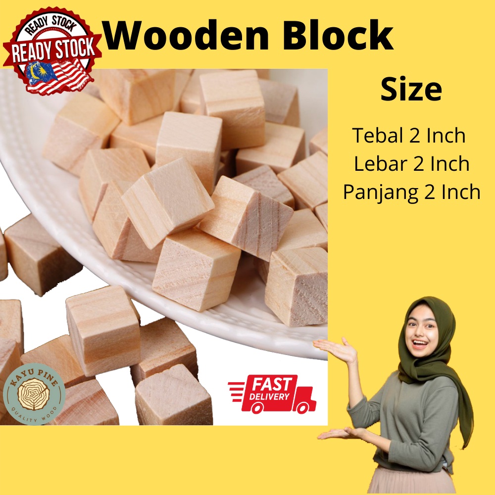 Wooden Block Pine | Wooden Cube | Wood Block | Block | Cube | Kayu Empat Segi | Wooden block building blocks