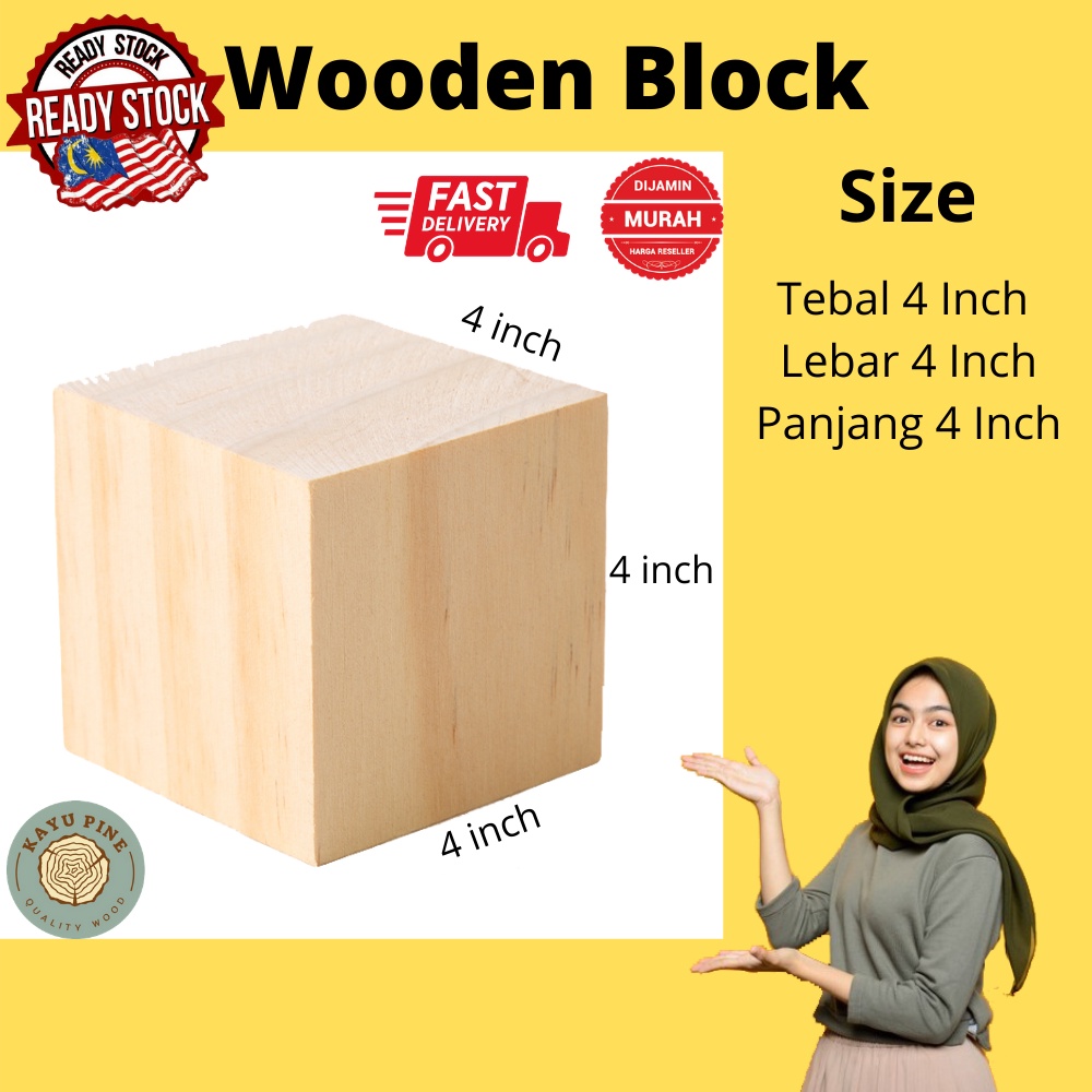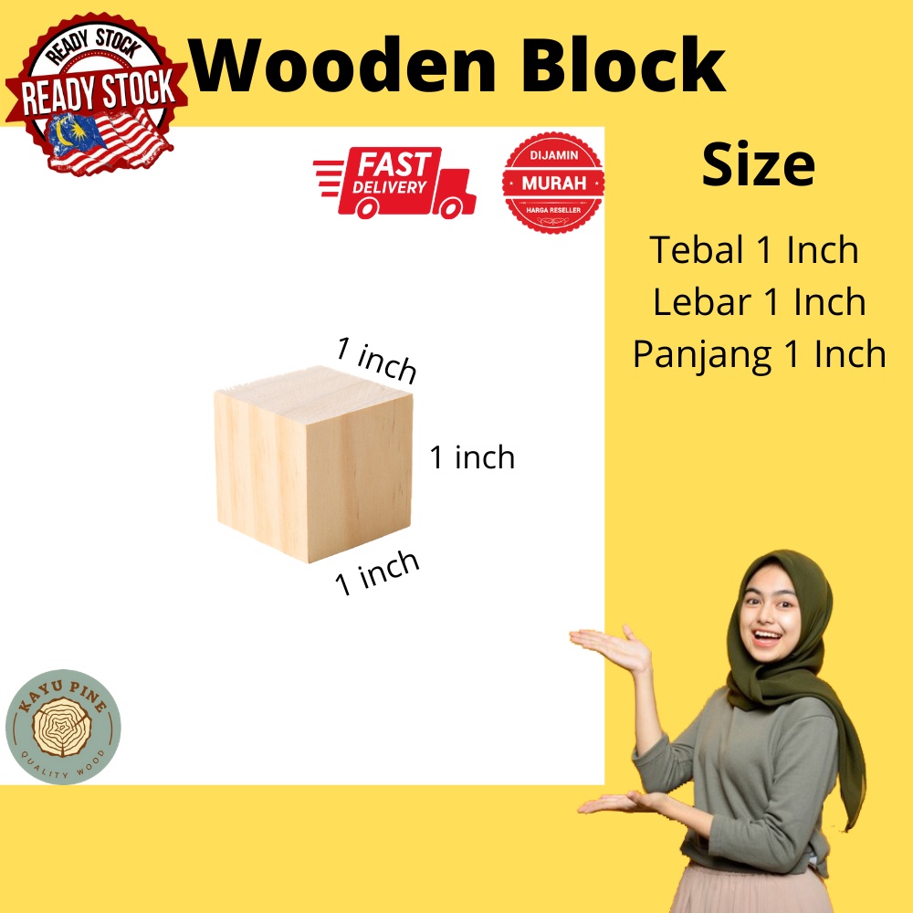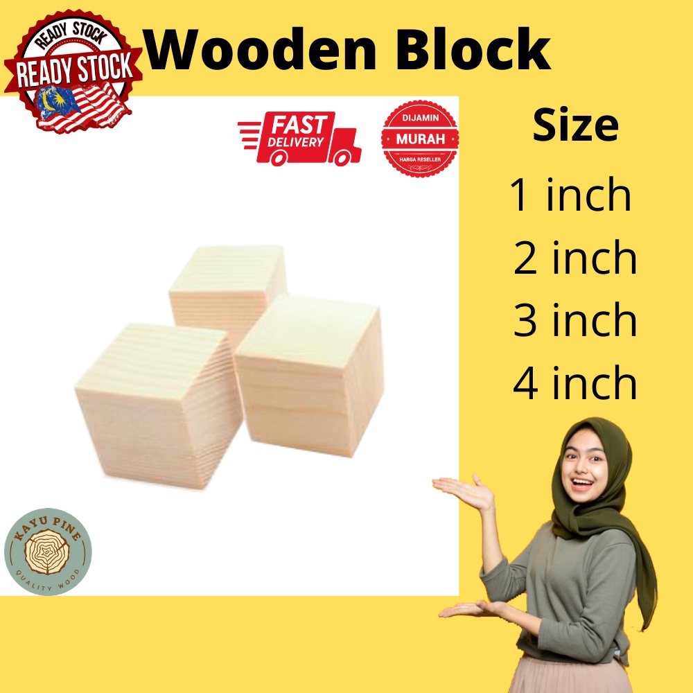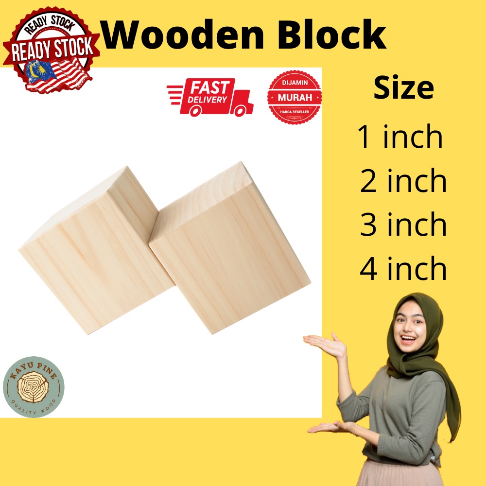Wooden Block Pine | Wooden Cube | Wood Block | Block | Cube | Kayu Empat Segi | Wooden block building blocks