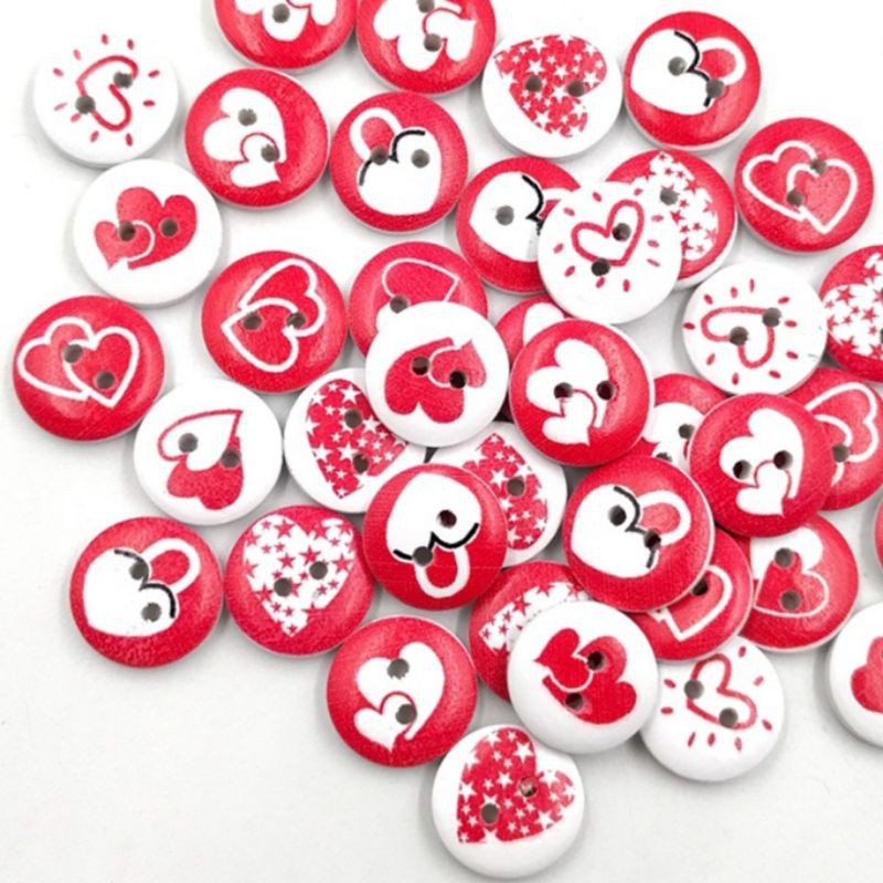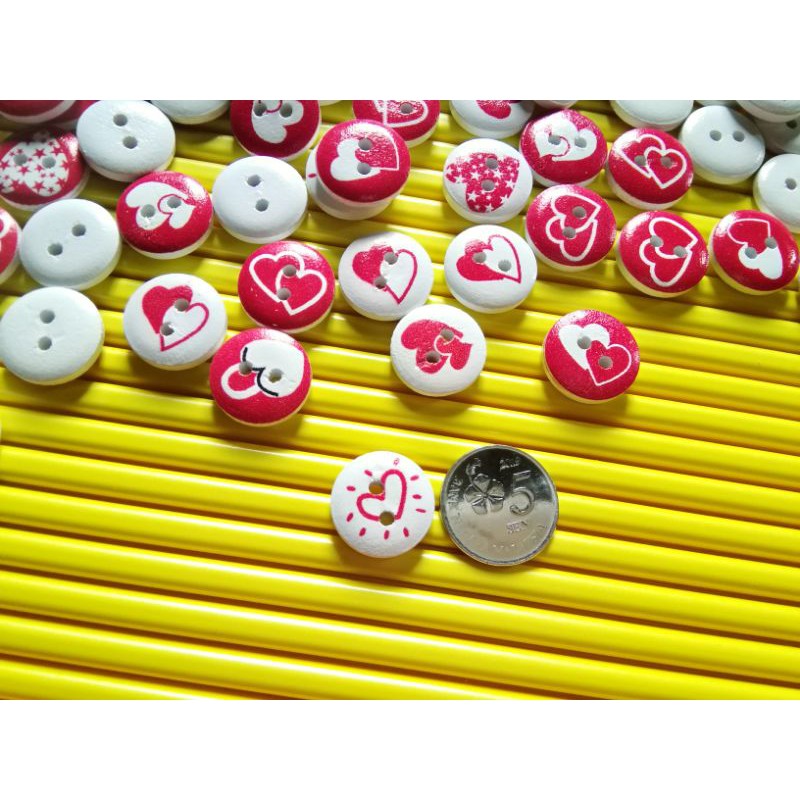 Wooden Button for Craft Work / Butang kayu with beautiful design 10 pcs