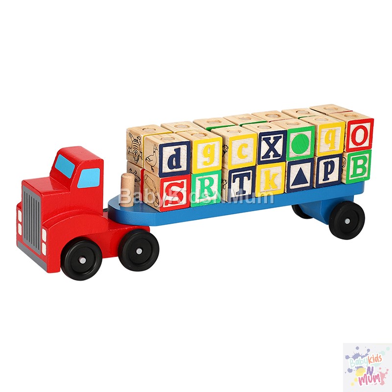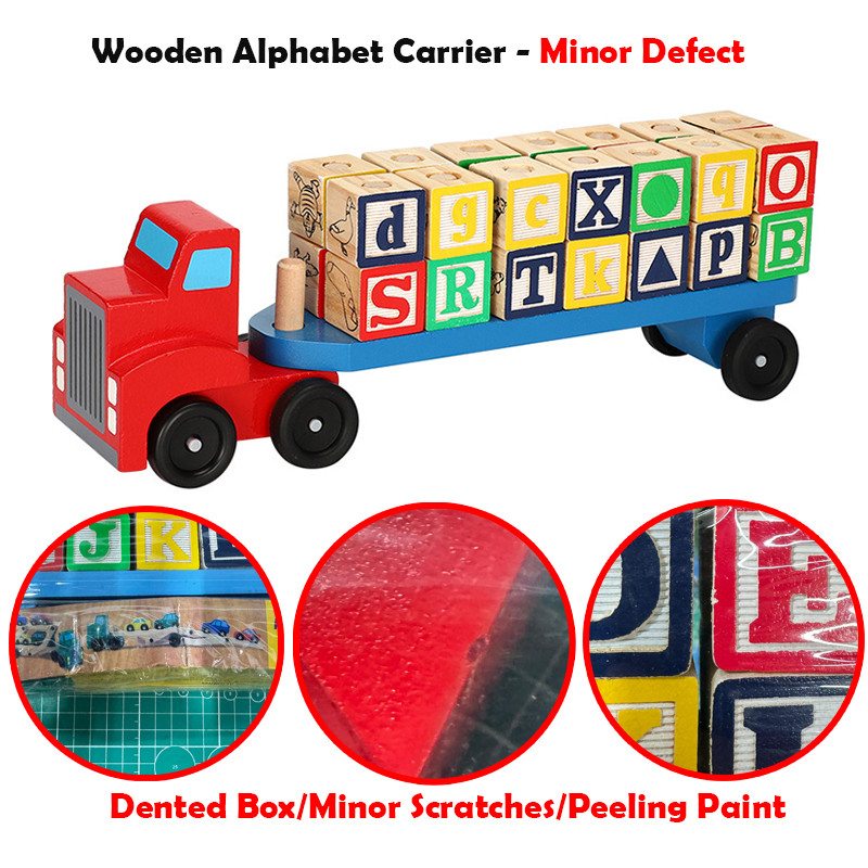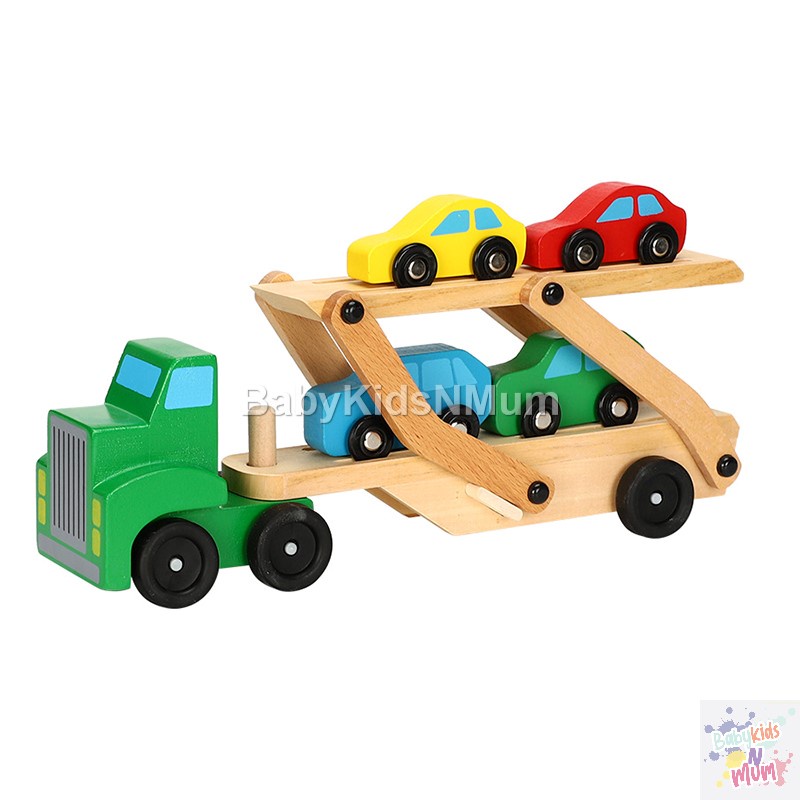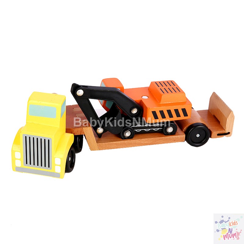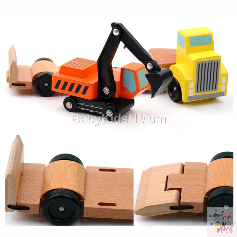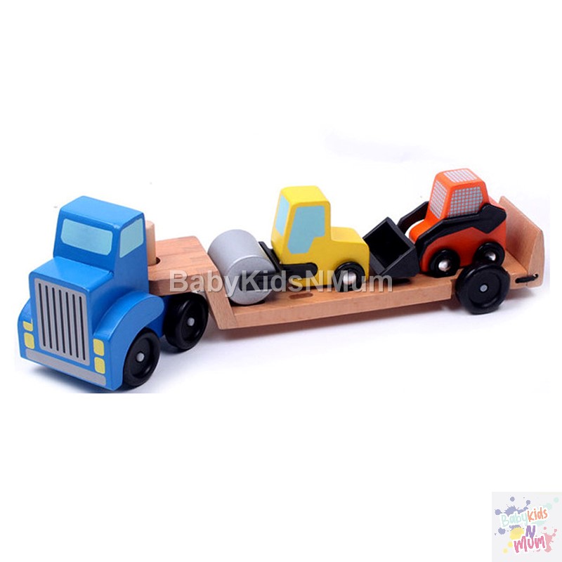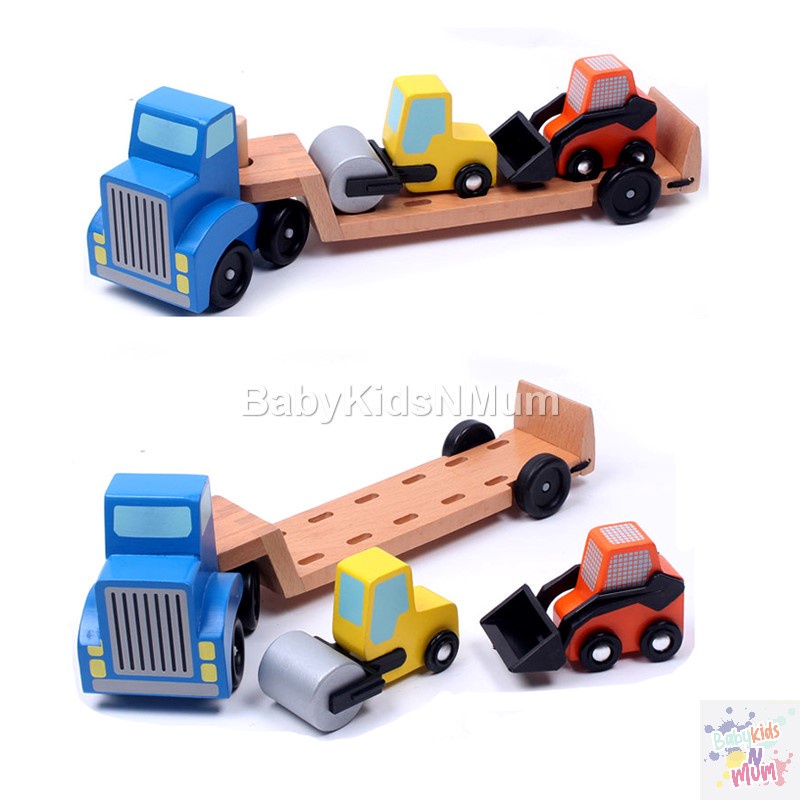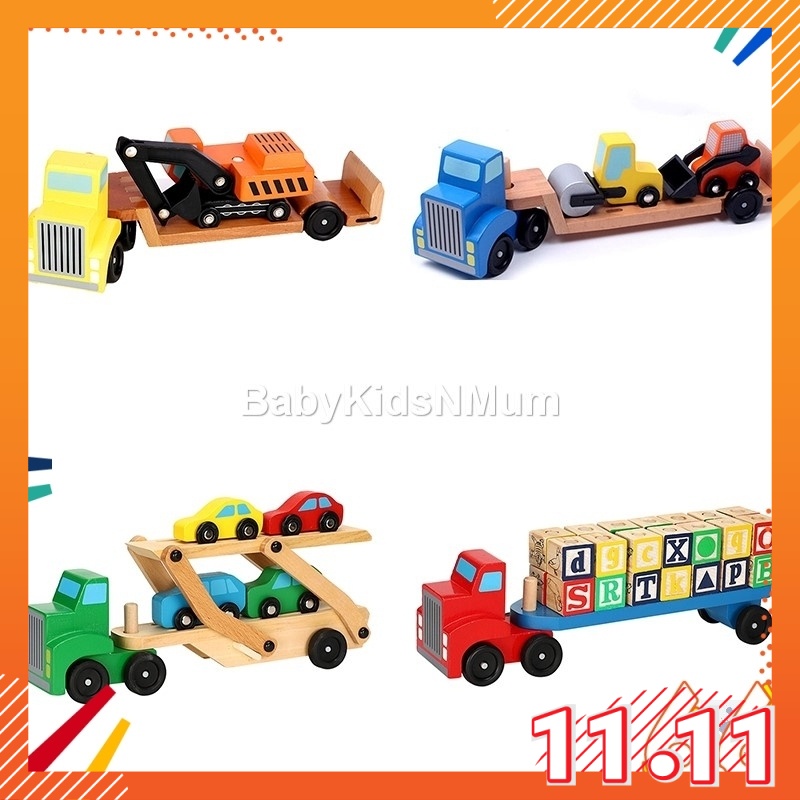 Wooden Car Transporter Toy Double Decker Trailer Excavator Loader Alphabet Car Ramp Truck Carrier Vehicle Toys for Kids