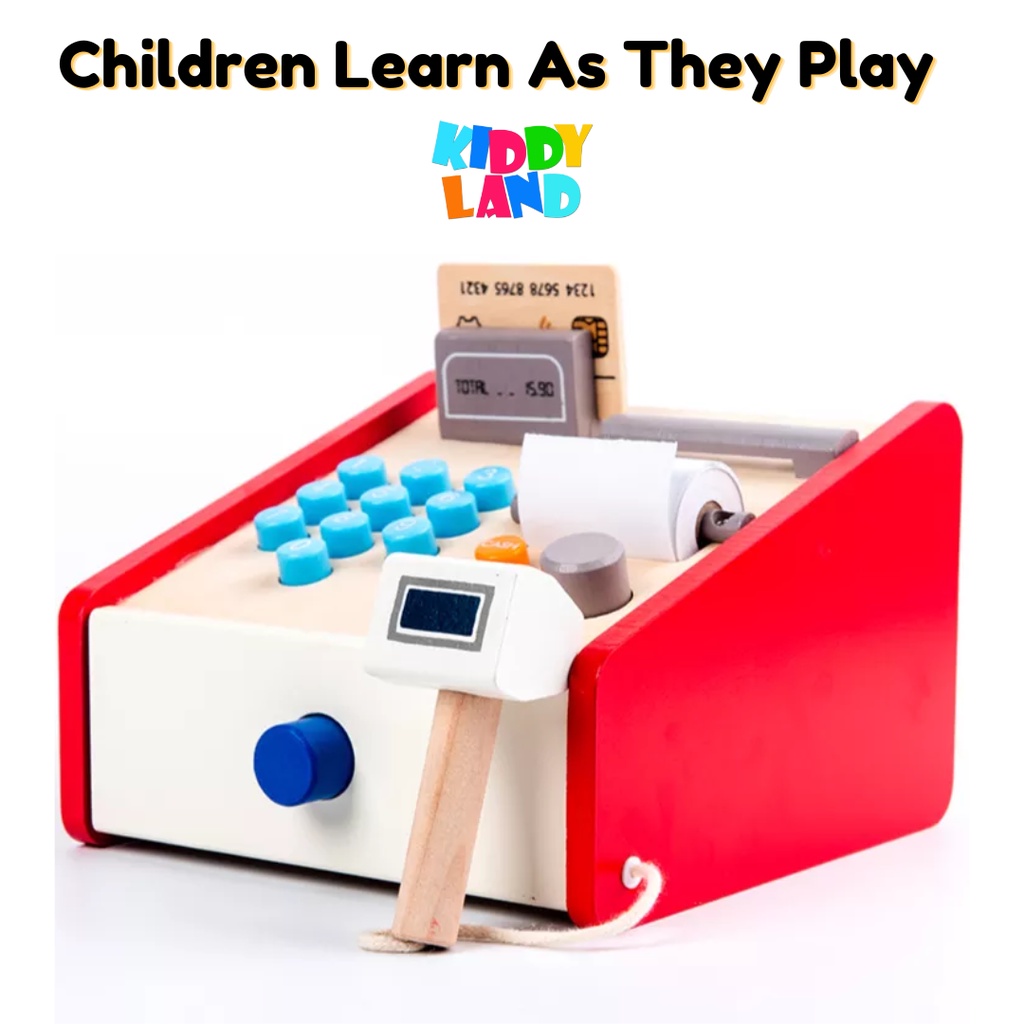 Wooden Cashier Machine Toy Role Play Educational Toy Pretend Play Cash Register Daftar Tunai Simulasi Kayu [READY STOCK]