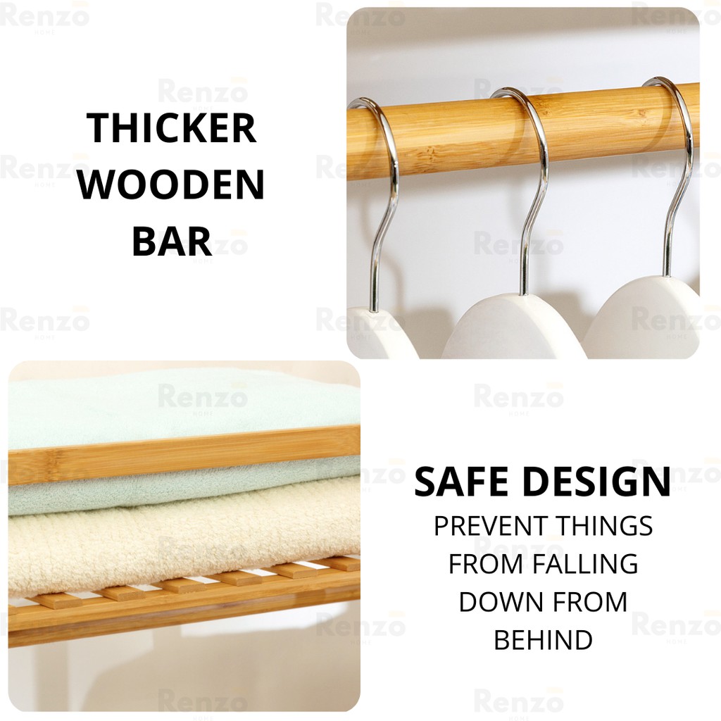 Wooden Clothes Wardrobe Rack Cabinet Hanger Hanging Pole Almari Pant Shelf Japan Penyangkut Baju Tudung Muslimah Tuala衣架