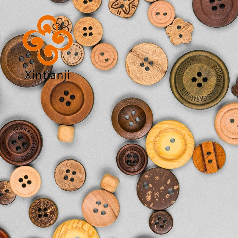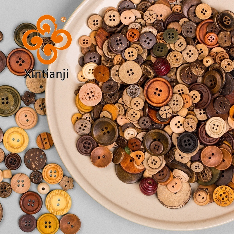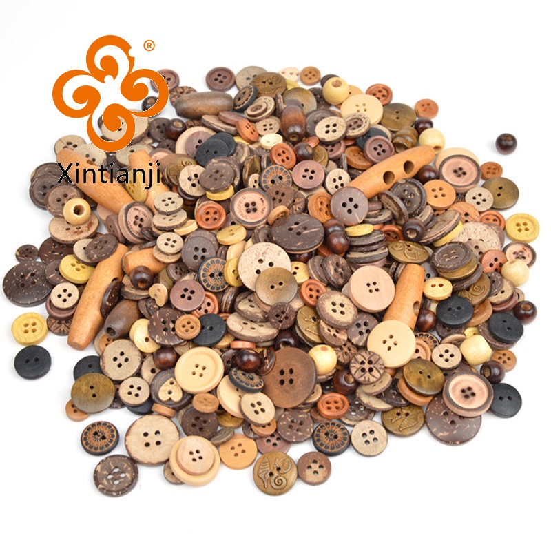 Wooden Coconut Shell Buckle Natural Wooden Carved Coconut Shell Buttons Environmental Protection Mixed National Retro Style 100 Pcs