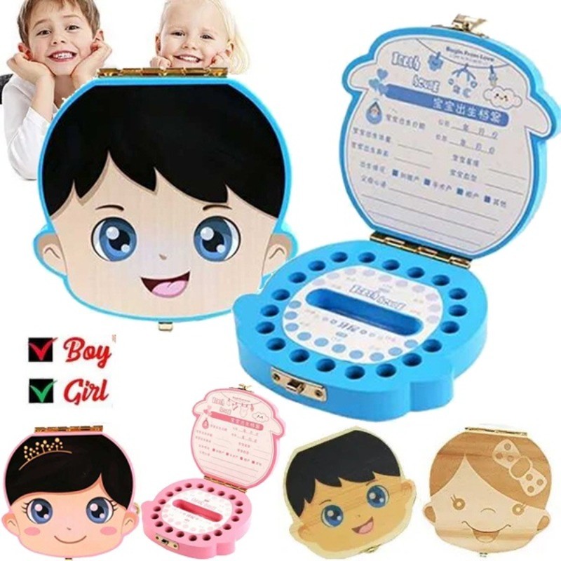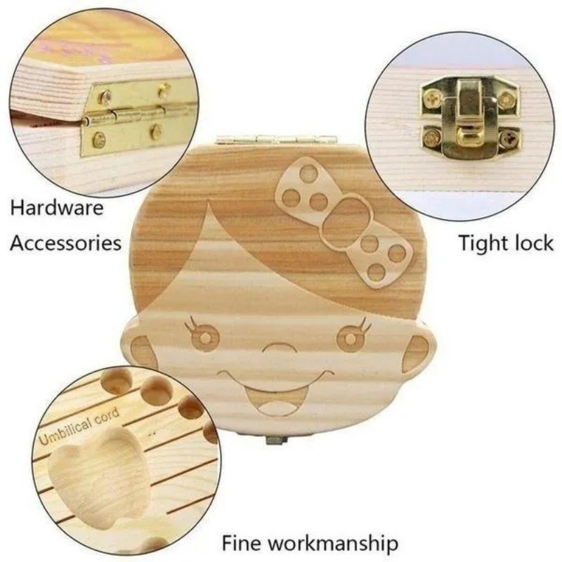 Wooden Color Baby Tooth Boxes Kids Milk Tooth Storage Box Keepsake Boxe