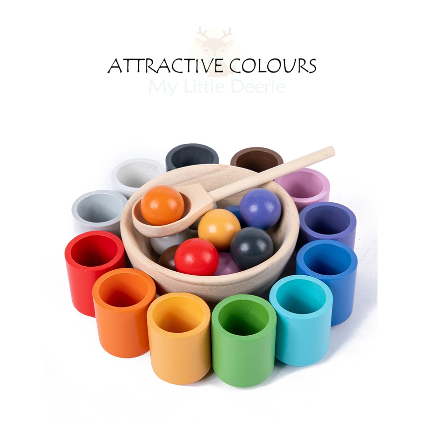 Wooden Colour Sorting Matching Balls and Cups Counting 123 Early Learning Educational Montessori Children Kids Toy