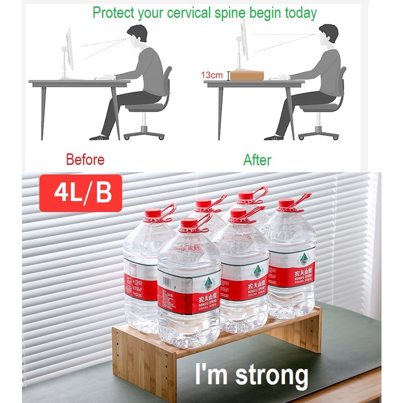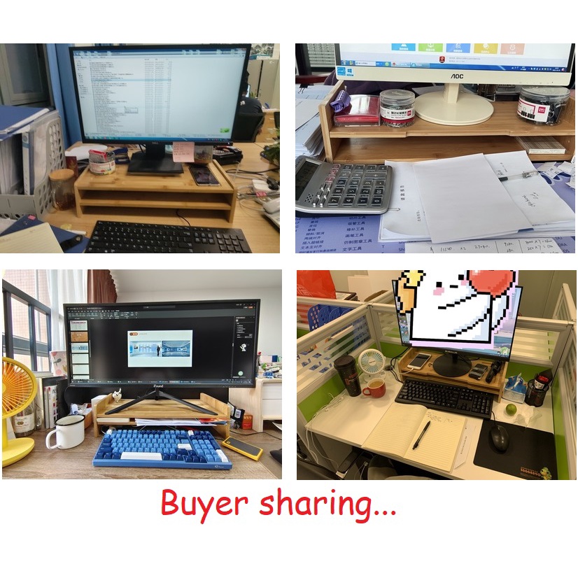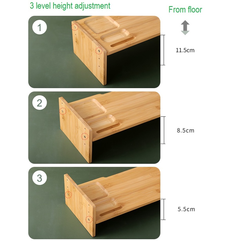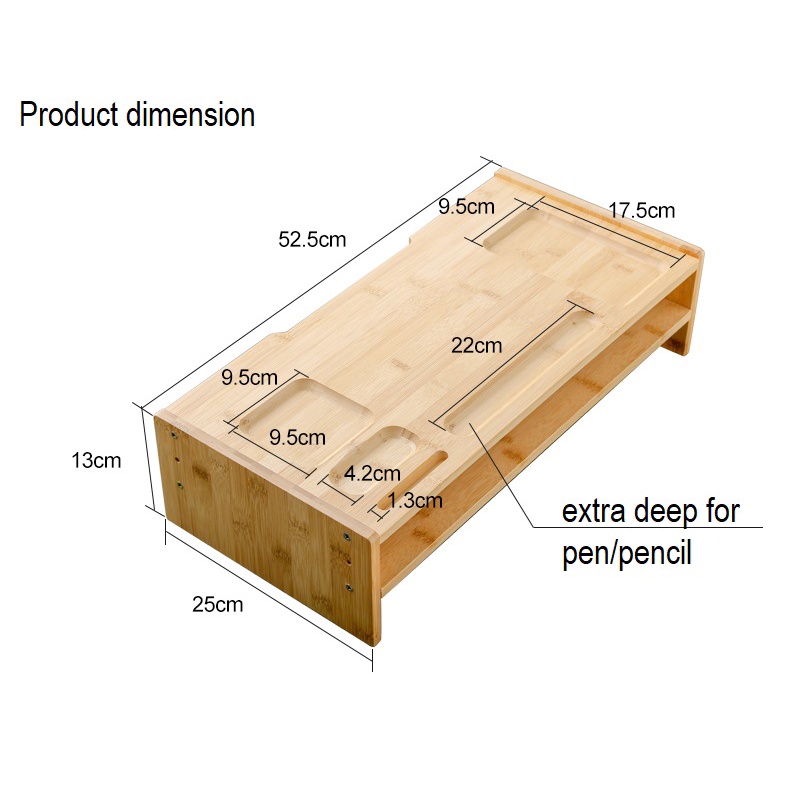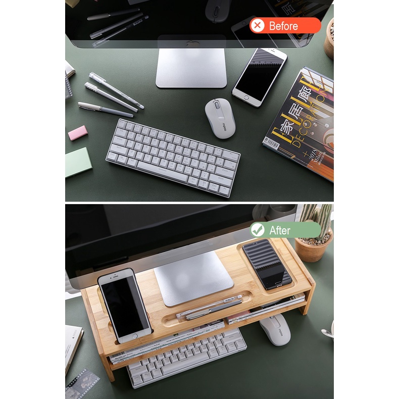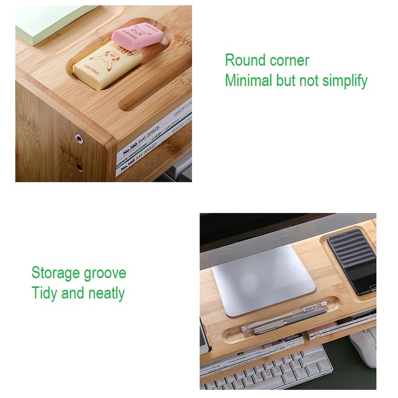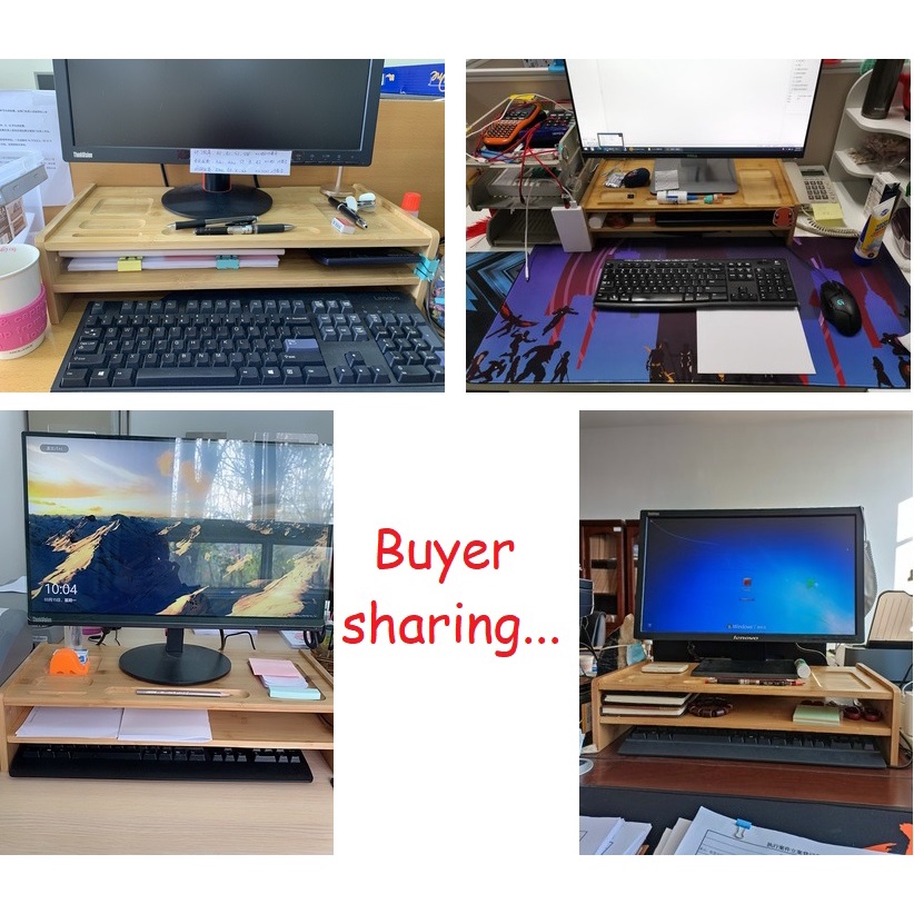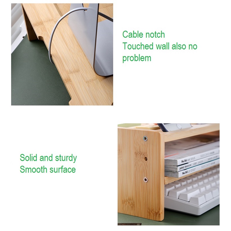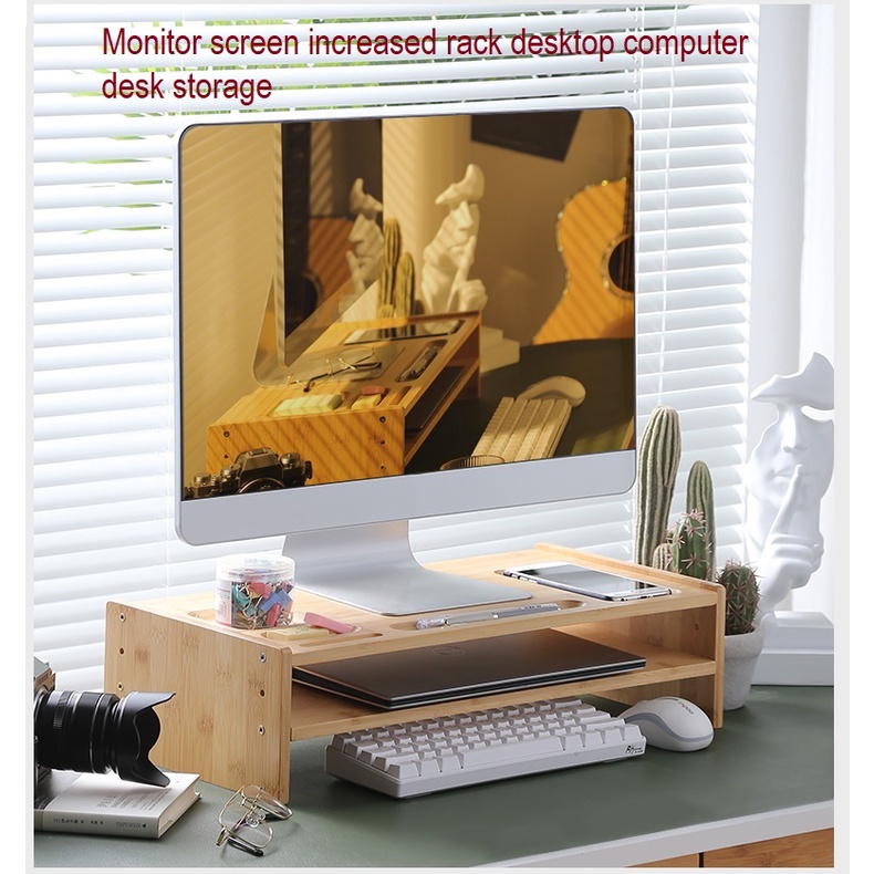 Wooden Computer Desktop Monitor Shelves Office Solid Bamboo Wood Laptop Keyboard Storage Rack