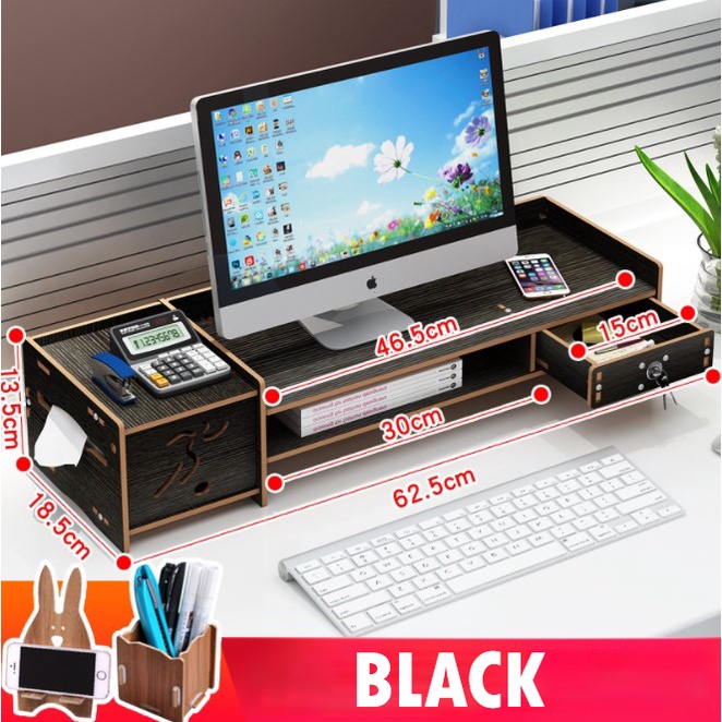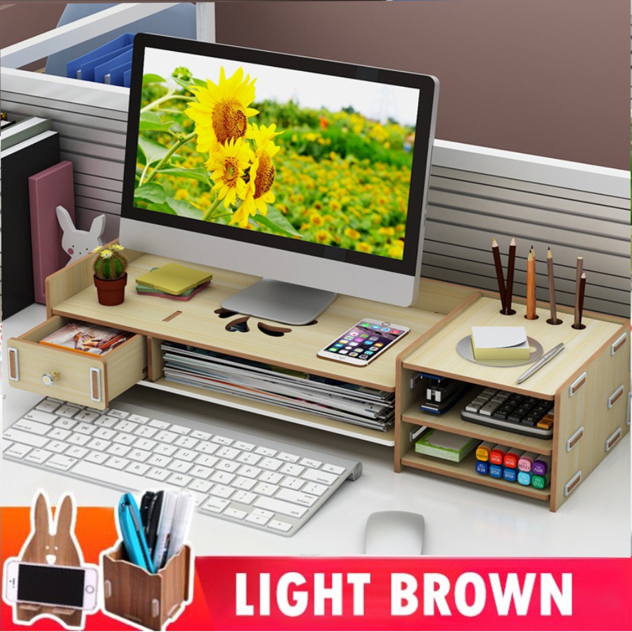 Wooden Desktop Computer Shelf Office Student Storage Organizer Rak Almari Bekas Meja Komputer Laptop Alat Tulis Buku