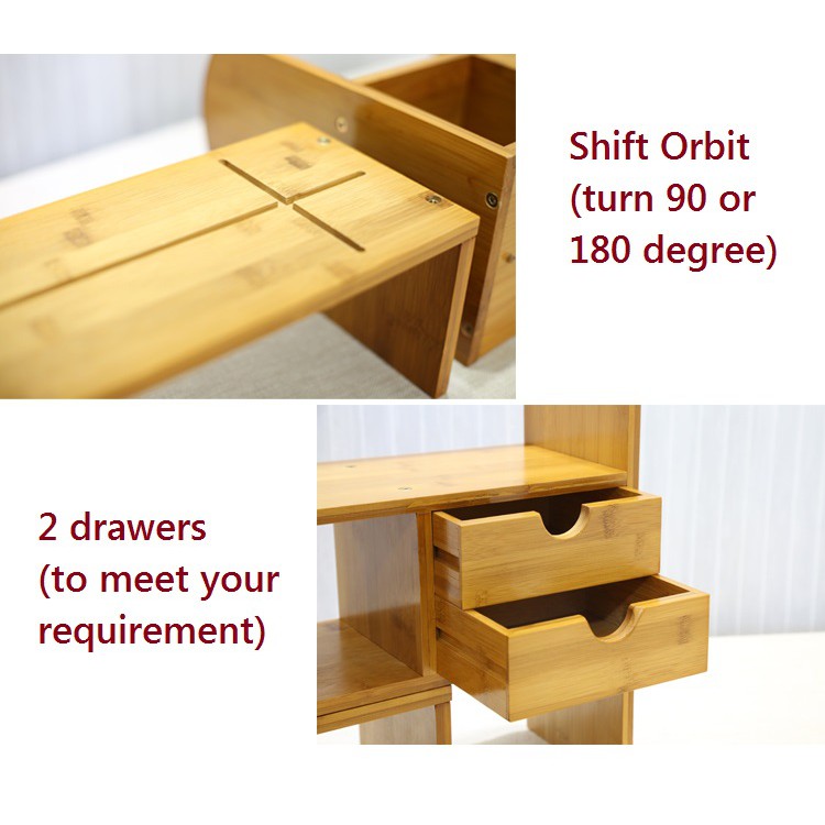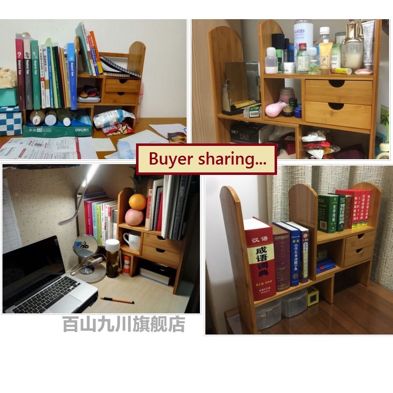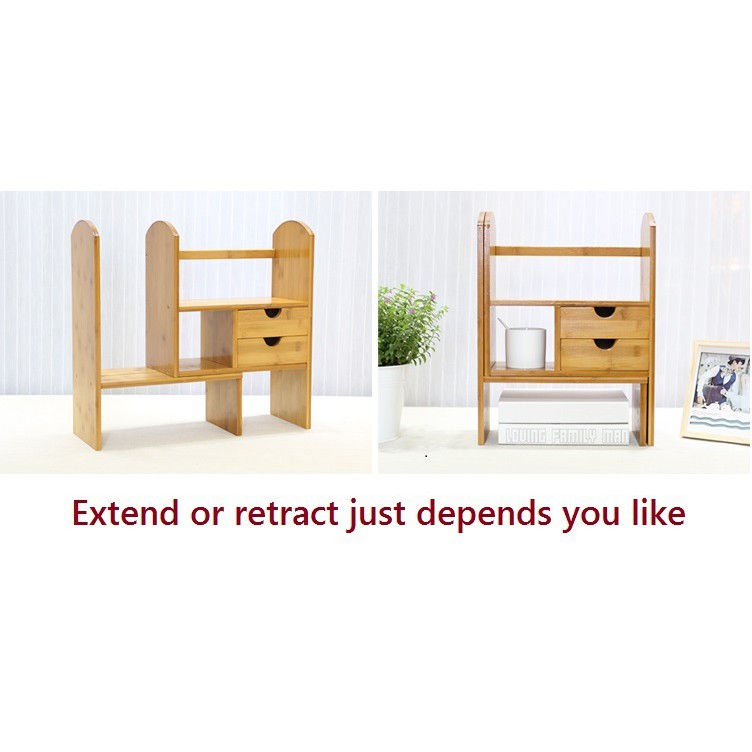 Wooden Desktop Retractable Bookshelf, Table Bookcase DIY Office Drawer Wood Rack