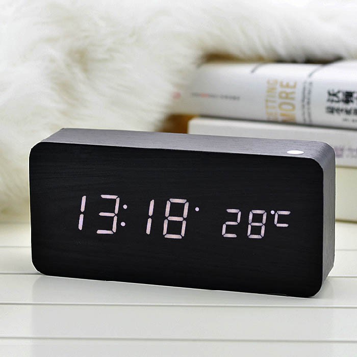 Wooden Digital LED Rectangular Wood Block Alarm Clock