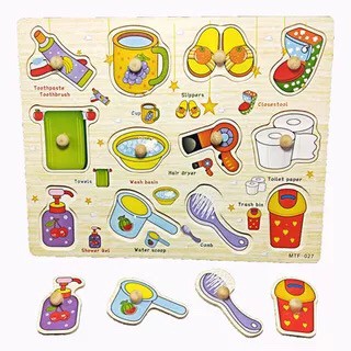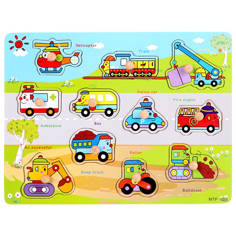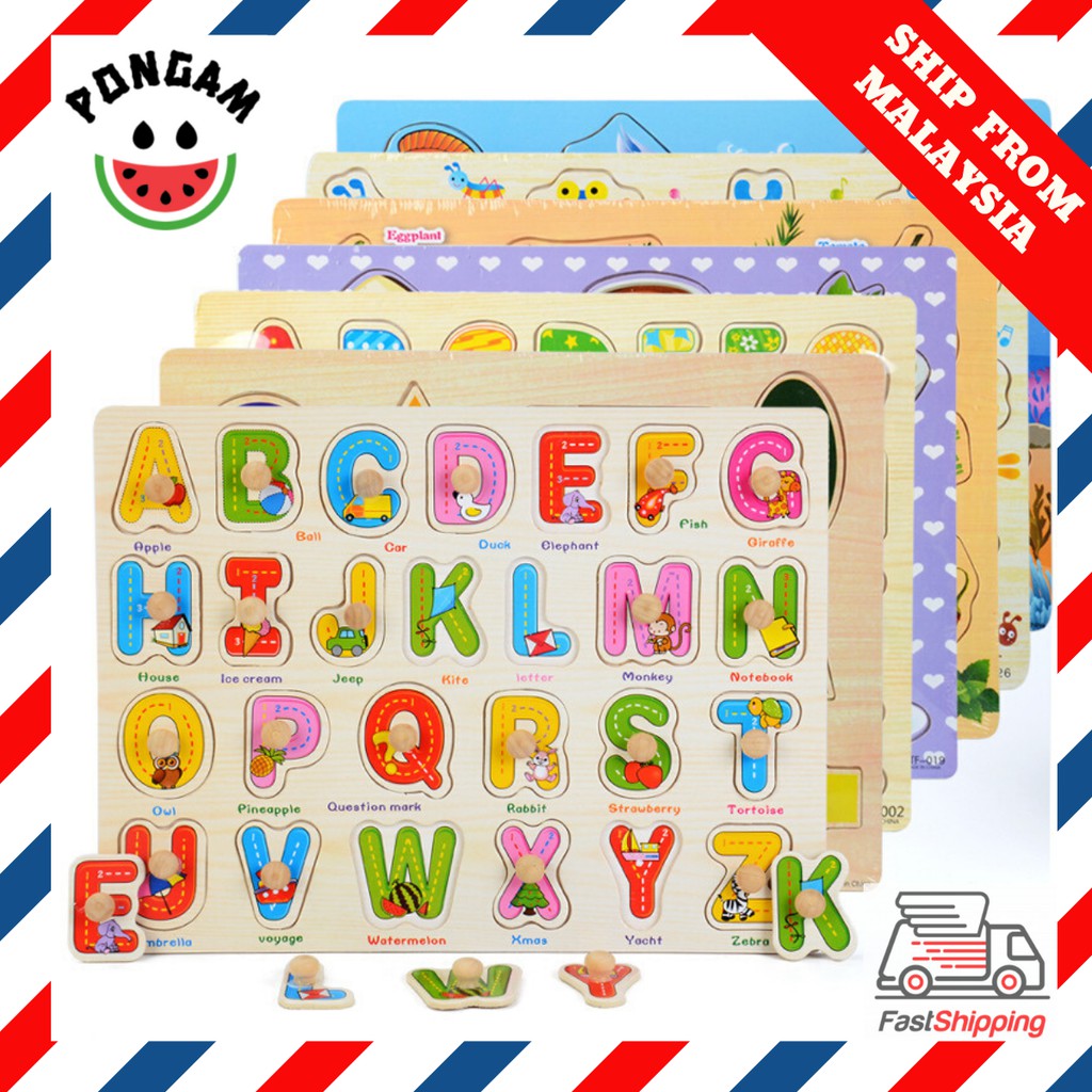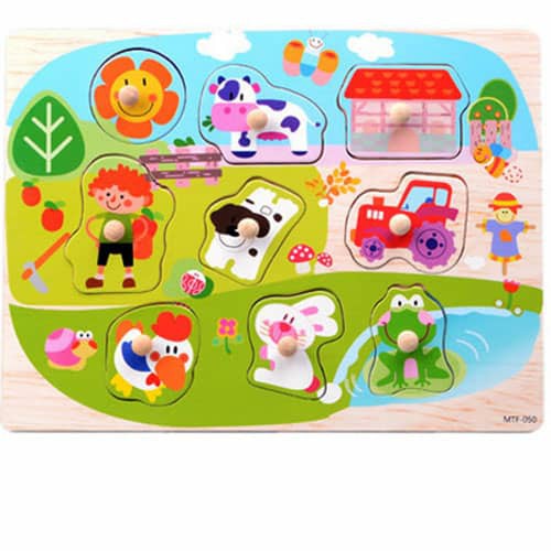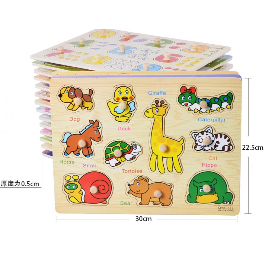 Wooden Educational Hand Grip Jigsaw Puzzle Kids & Baby Early Learning Knob Puzzle Toys Montessori