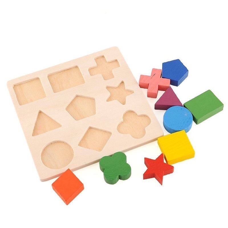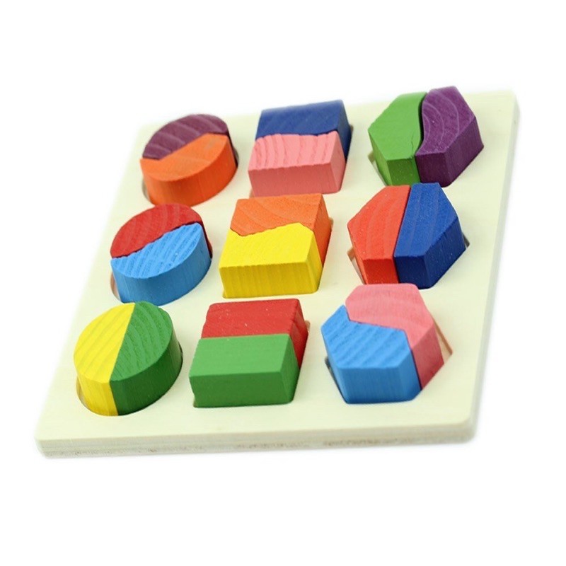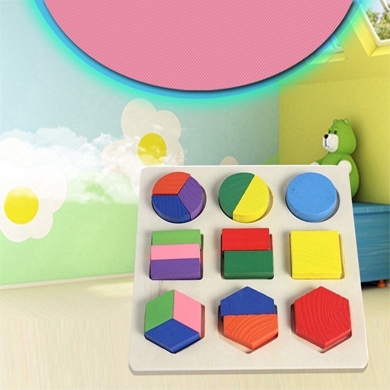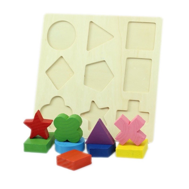 Wooden Educational Preschool Shape Color Puzzle Geometric Recognition Board Blocks Stacking Sort Kids Toddlers