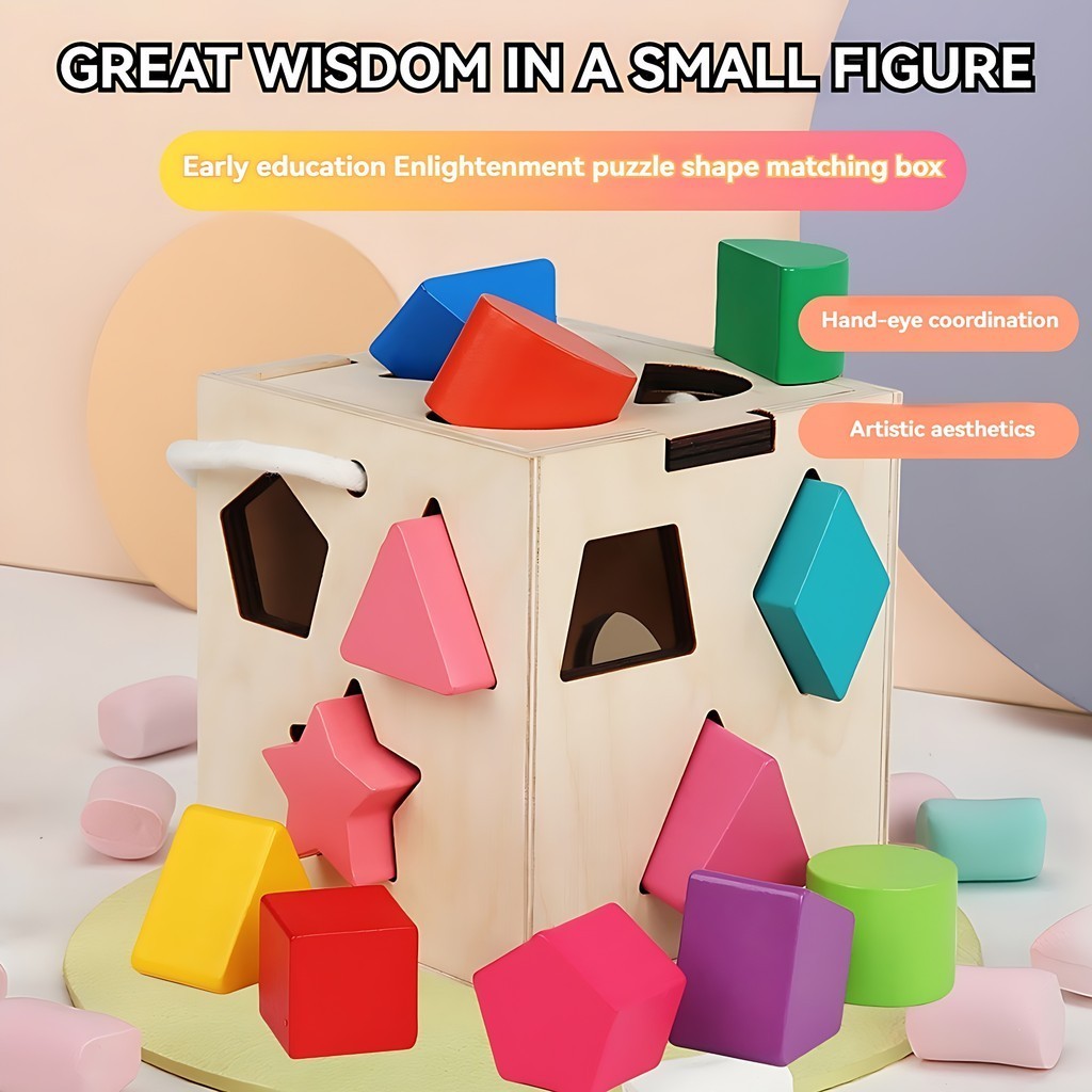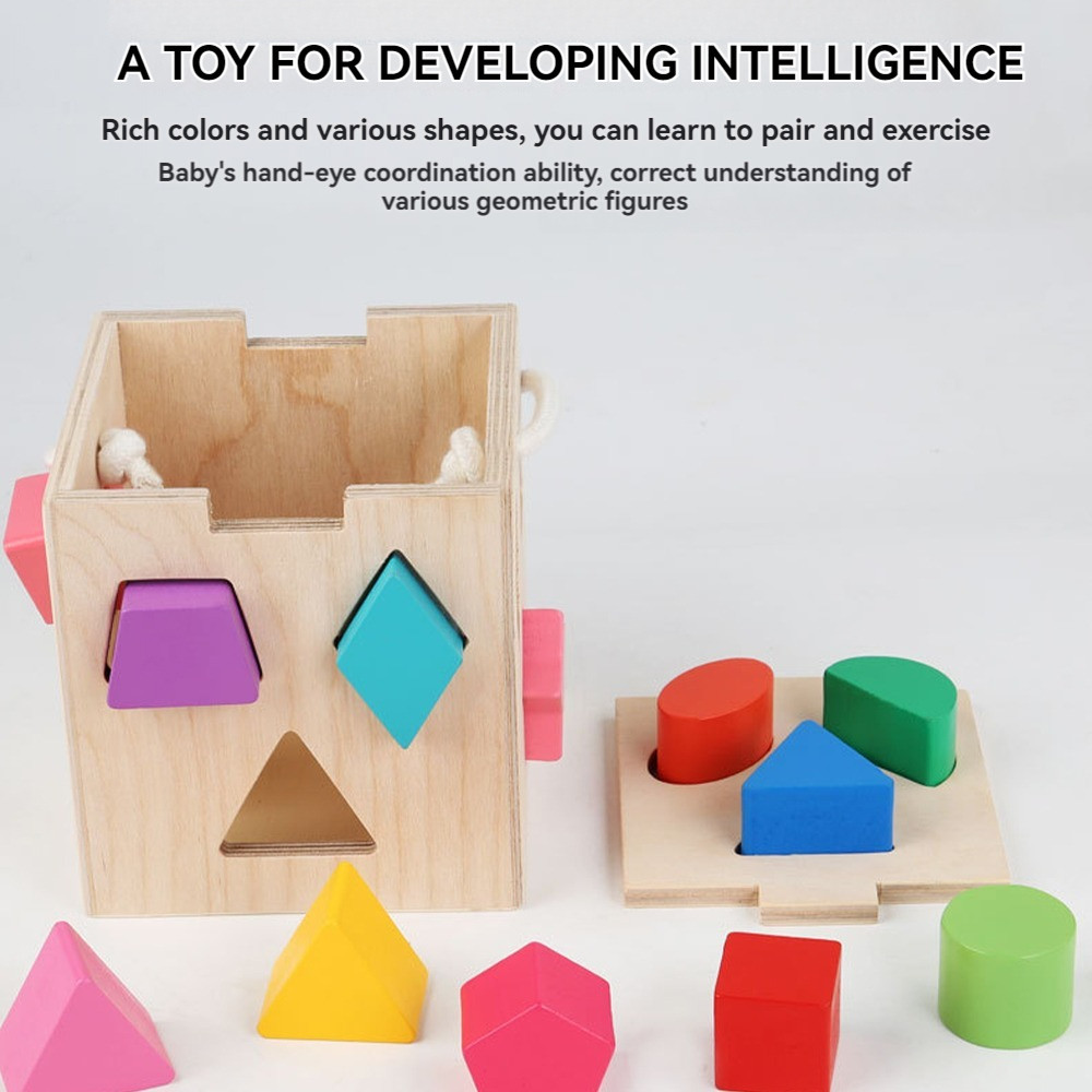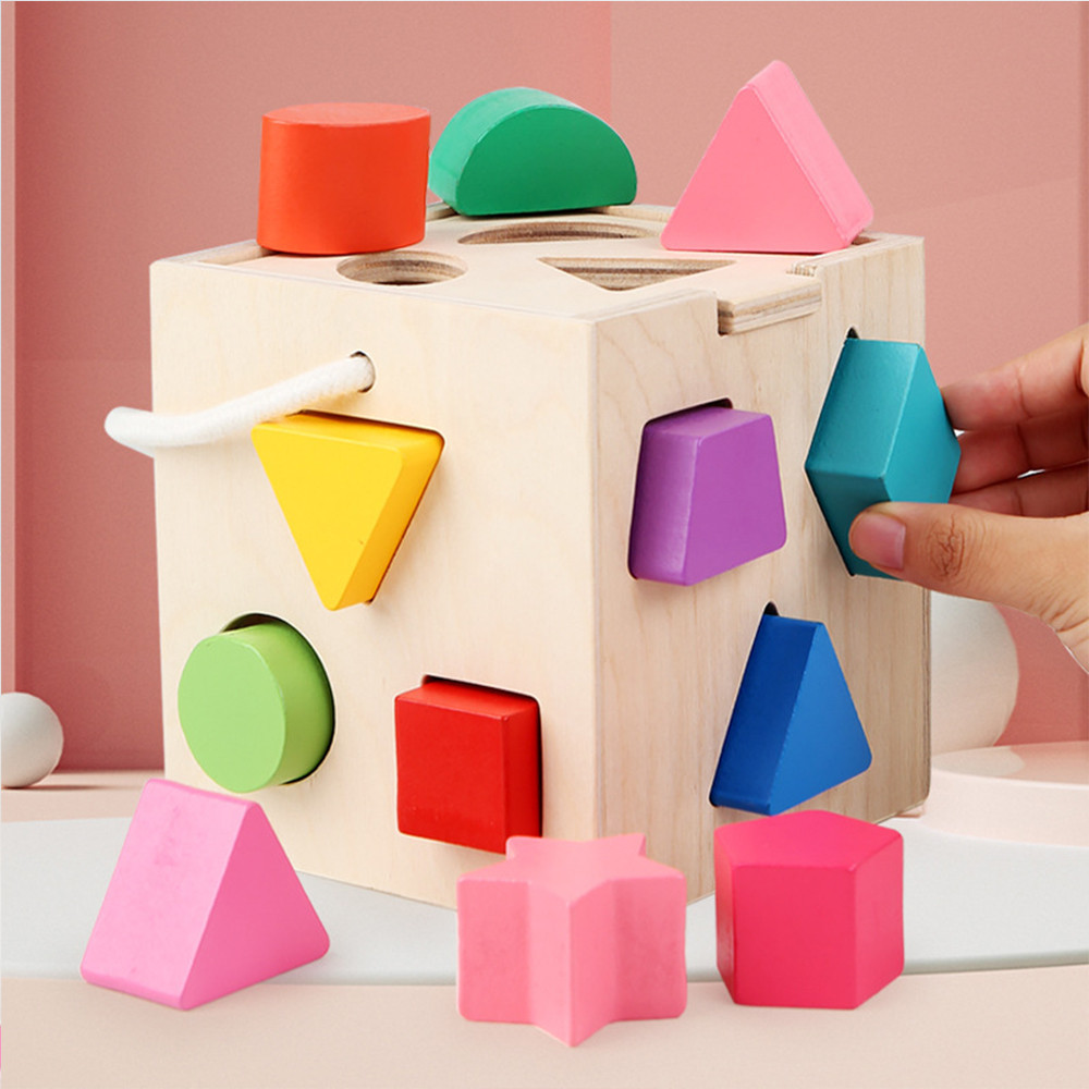Wooden Educational Toys Wooden Blocks Matching Toy Kids Early Learning Montessori Building Blocks Shapes