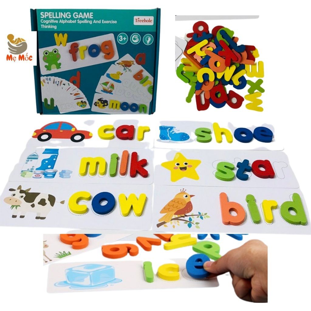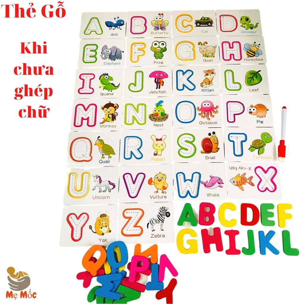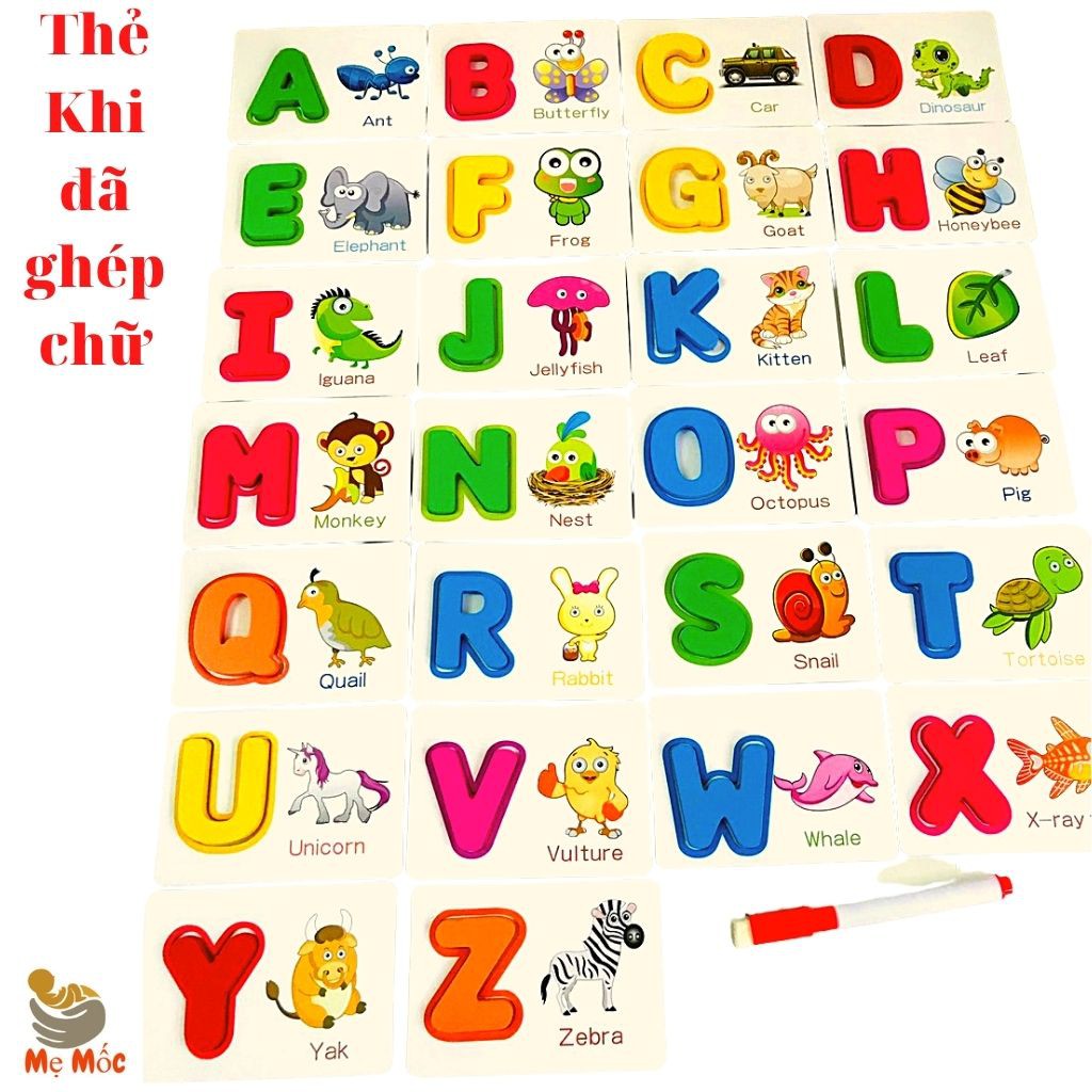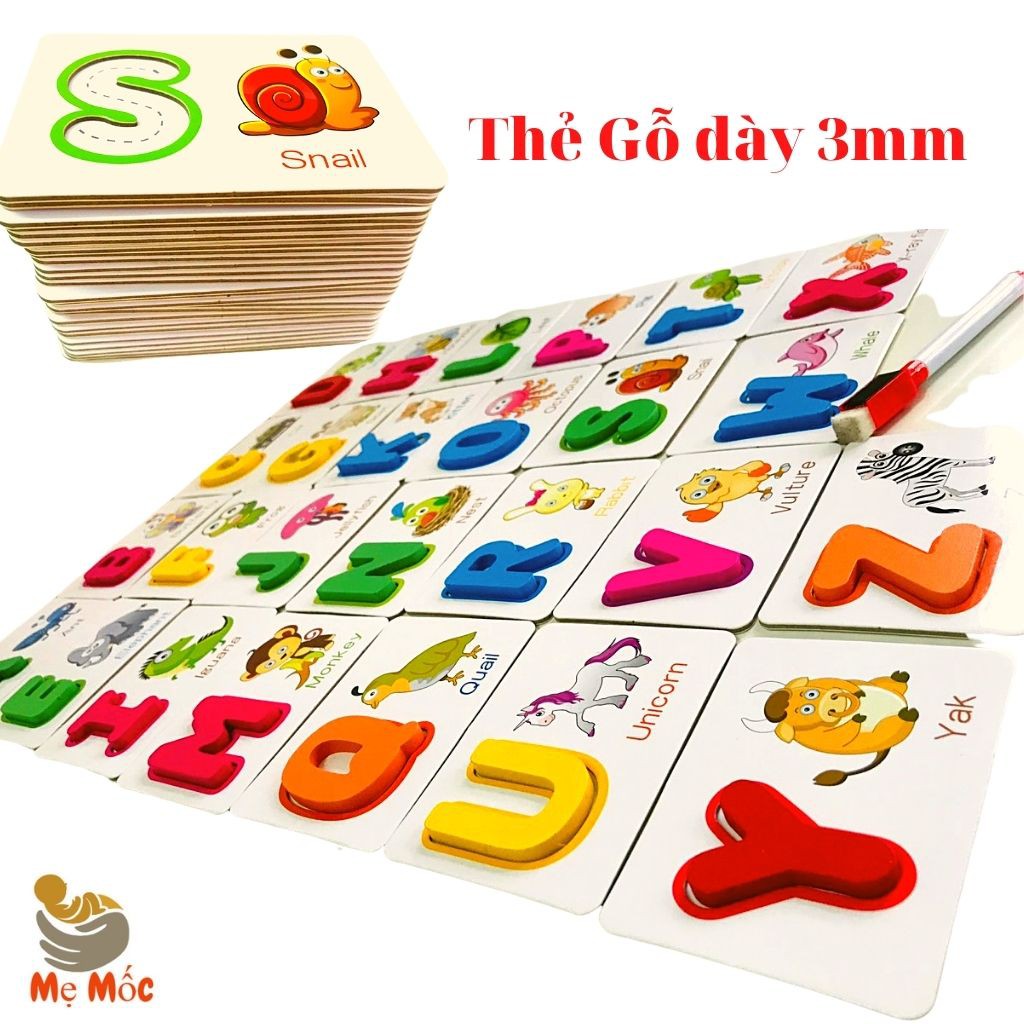Wooden English Letter Matching Cards - Smart Puzzle Wooden Toy - Flashcard Engraved with Sunken Letters Free 26 Wooden Letters + Magic Pen
