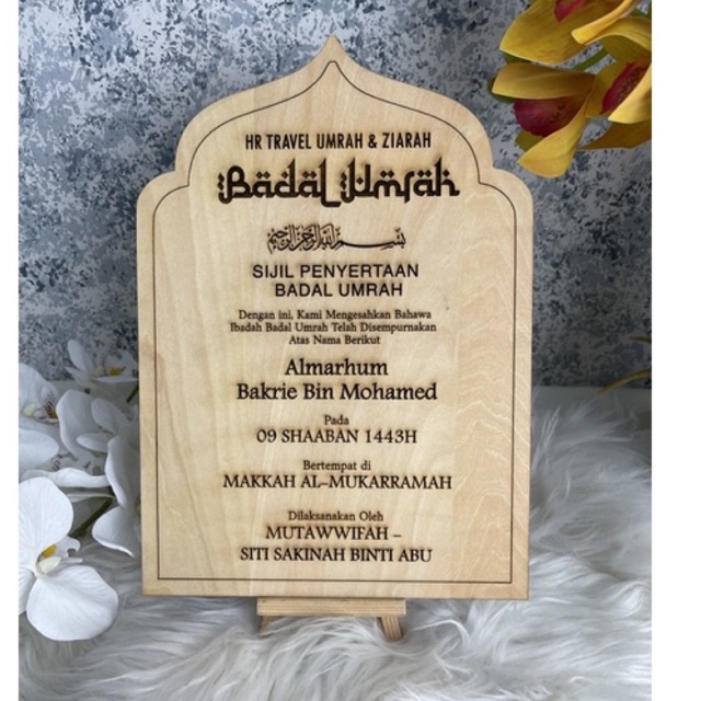 Wooden Engrave-Sijil Ukiran Kayu Sijil Aqiqah/ Sijil Umrah