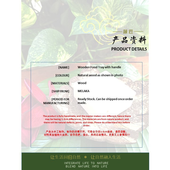 Wooden Food Tray with handle Decorative Kitchen Tray From Rattan Maker Cafe Restaurant Food Carrier Design Rattan Maker