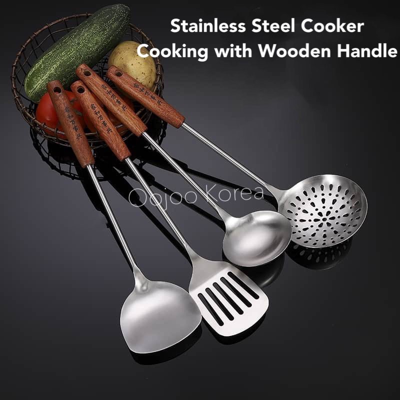 Wooden Handle Stainless Steel Kitchen Utensils (Ladle/Turner/Skimmer/Slotted Turner)