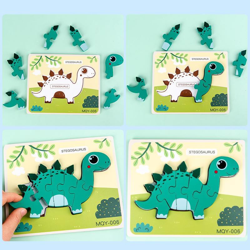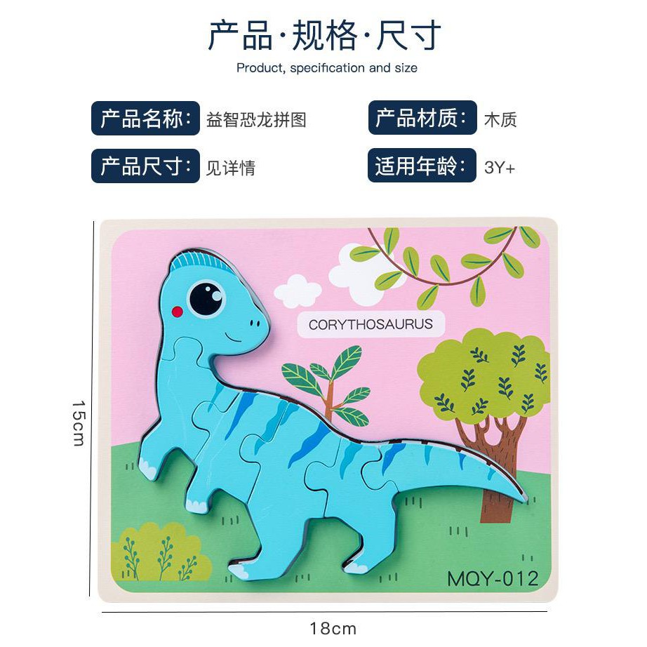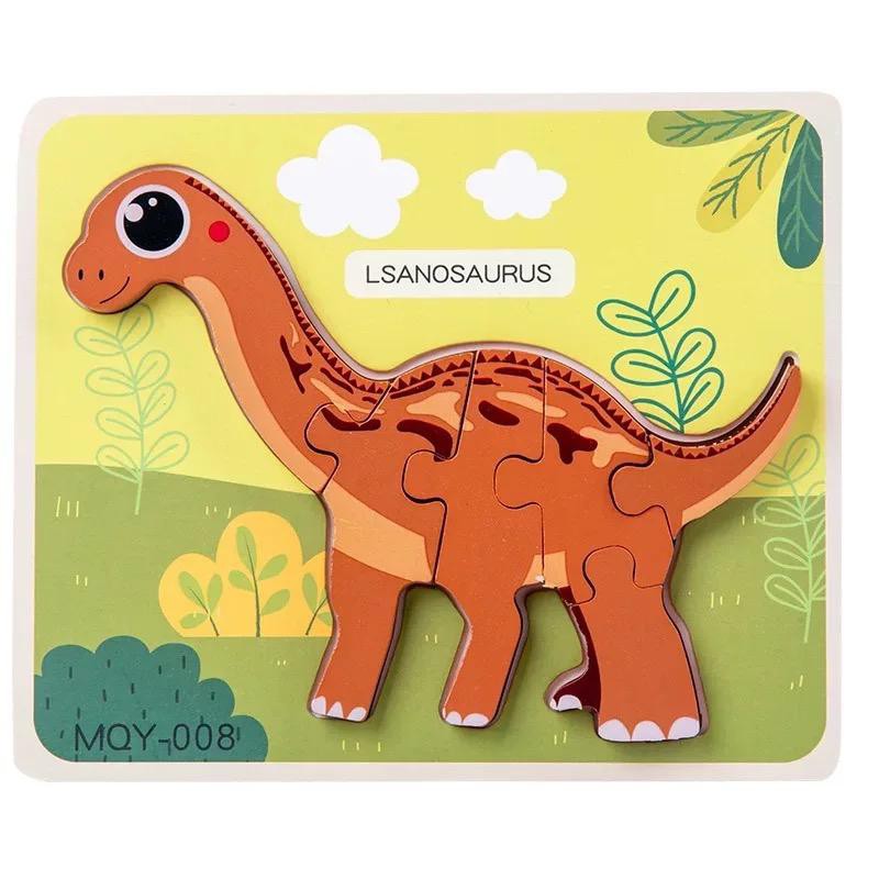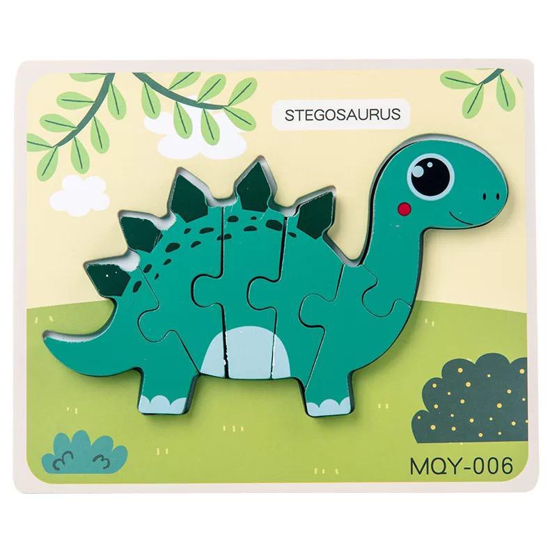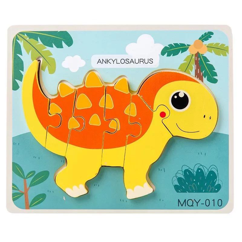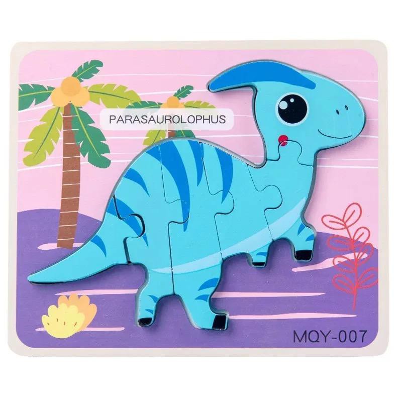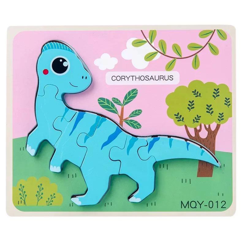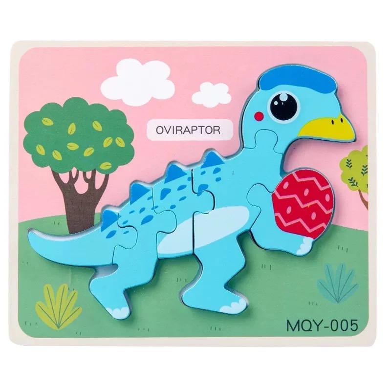 Wooden Jigsaw Dinosaur Puzzle 3D Dino Block Baby Montessori Preschool Early Learning Toys For Kids Boy Mainan Dinasour