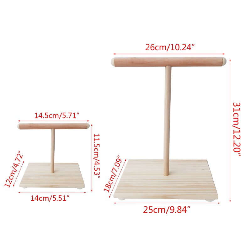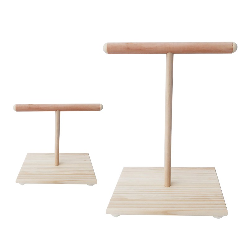 Wooden Parrot Perch T Stand Bird Training Paw Grinding Toys Pet Cockatiel Cage