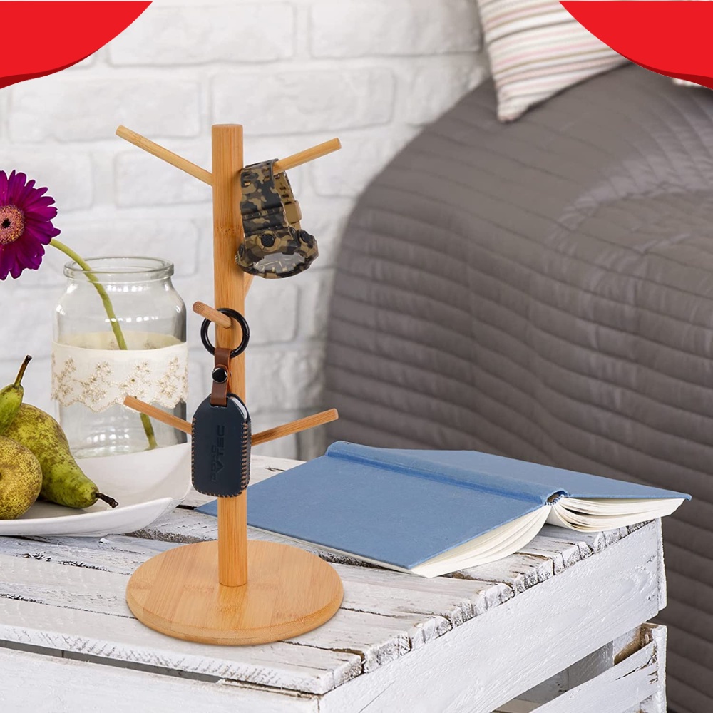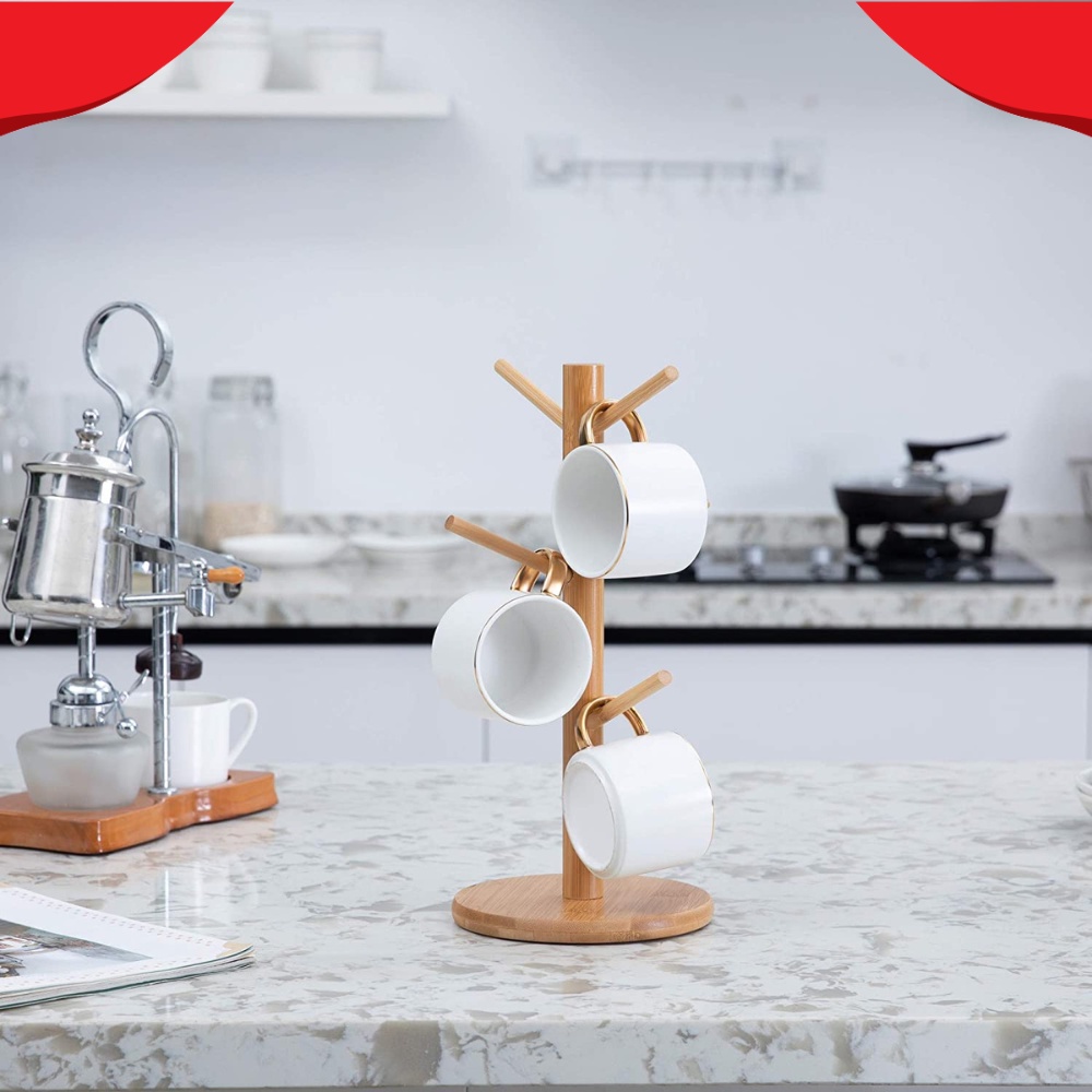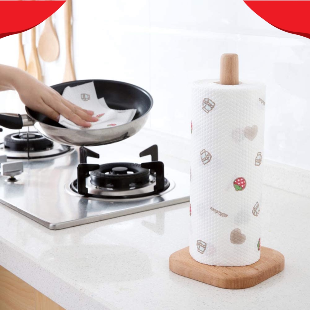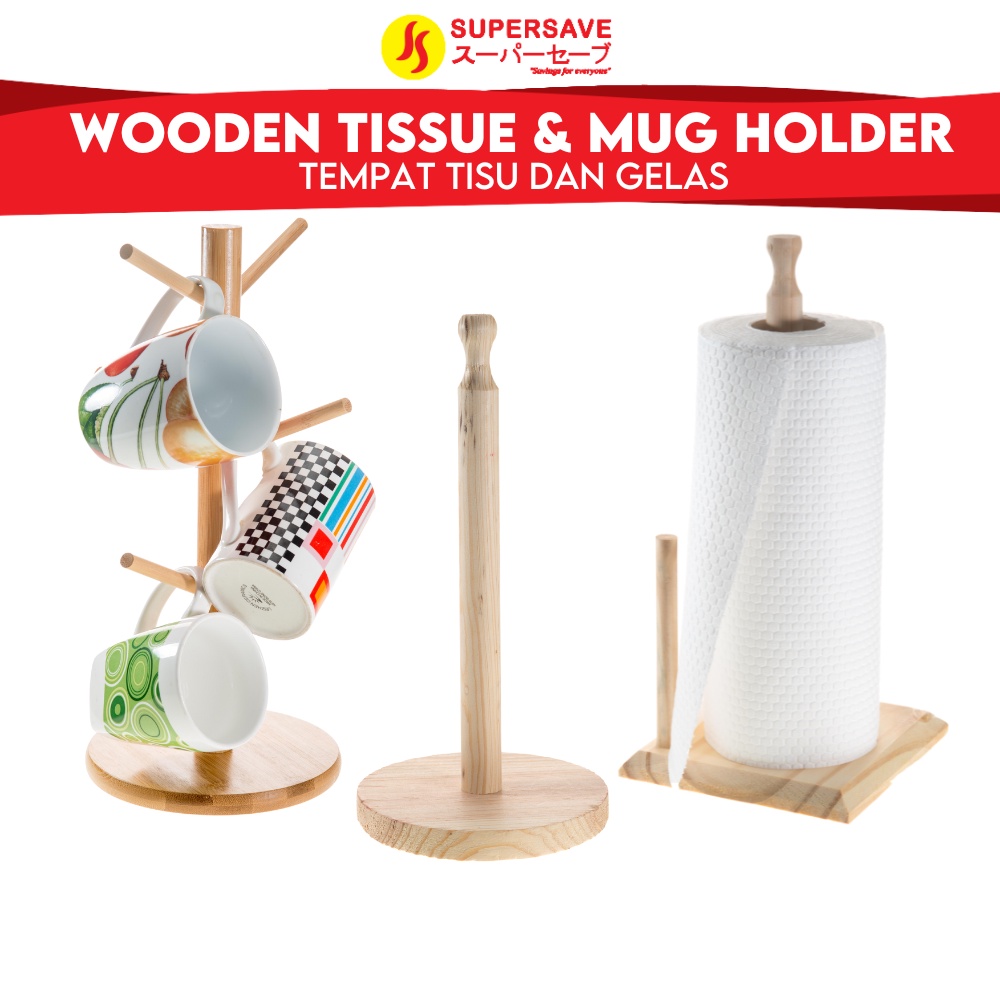 SUPERSAVE Wooden Portable Kitchen Tissue Holder Kitchen Towel Holder Bamboo Mug Holder Vertical Tempat Letak Tisu Gulung