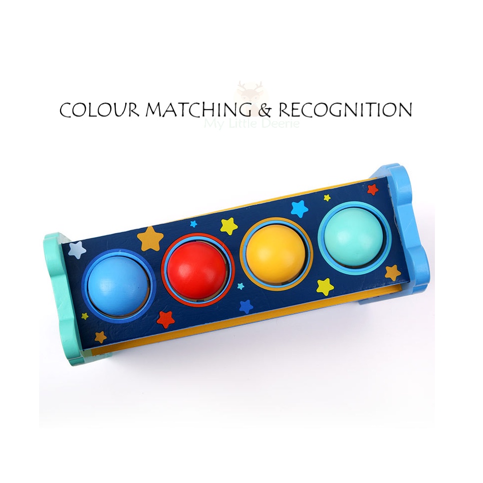 Wooden Pounding Ball Tower Bench Ball Ramp Early Learning Educational Montessori Children Kids Toy