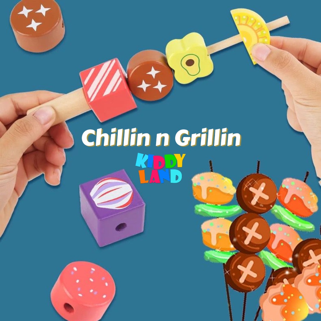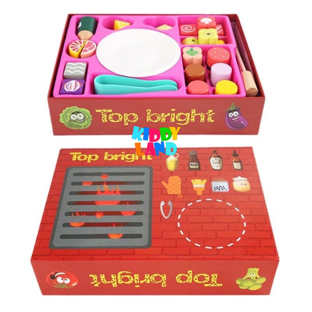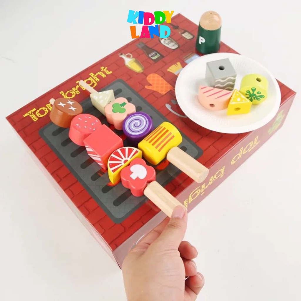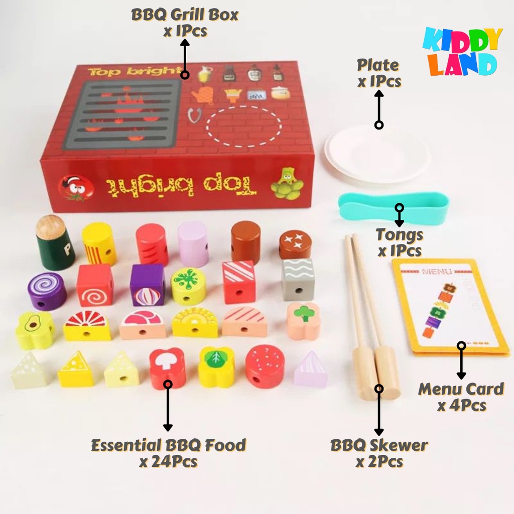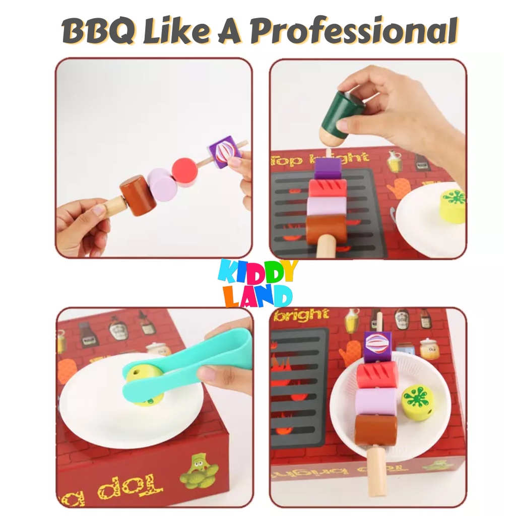Wooden Pretend Play BBQ Set Barbecue Play House Toy Set Learning Cooking Toys Fun Grill & Serve BBQ
